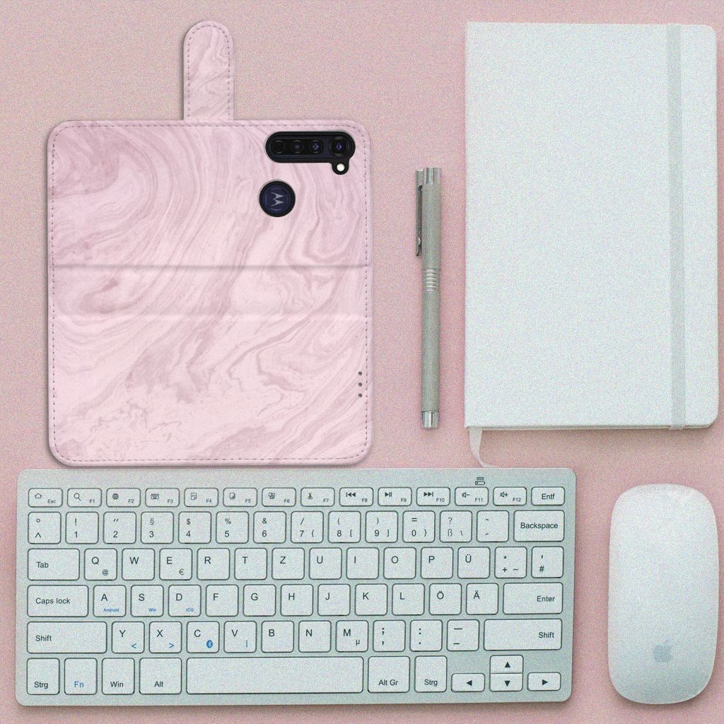 Motorola Moto G Pro Bookcase met magnetische sluitclip Marble Pink