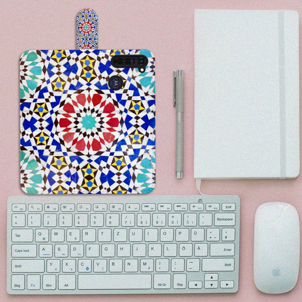 Aan design hoesjes met kunstvormen geen gebrek in onze uitgebreide collectie. Wat dacht je van dit design hoesje met Mozaïek . Dit is een kunstvorm waarbij een grote afbeelding wordt gemaakt uit een groot aantal kleine gekleurde steentjes (tesserae), die in een vloer of wand worden gemetseld. Deze gekleurde steentjes zie je terug op dit boekhoesje met design van mozaïek. Een boekhoesje is zo’n beetje de veiligste case die er bestaat. Een Motorola Moto G Pro Bookcase met print zorgt voor een volledige bescherming van je smartphone en wordt aan alle zijden bedrukt met mozaïek. Een deel van de foto’s staat ook op het lipje aan de buitenzijde. Verder is de houder aan de binnenzijde van TPU. De Grieken en Romeinen beheersten de kunst al. Op diverse plaatsen in Europa zijn mozaïeken teruggevonden die tot op de dag van vandaag goed bewaard zijn gebleven. Met een hoesje met mozaïek blijft jouw telefoon in tact. Je pasjes en briefgeld kun je in de vakjes aan de binnenzijde stoppen