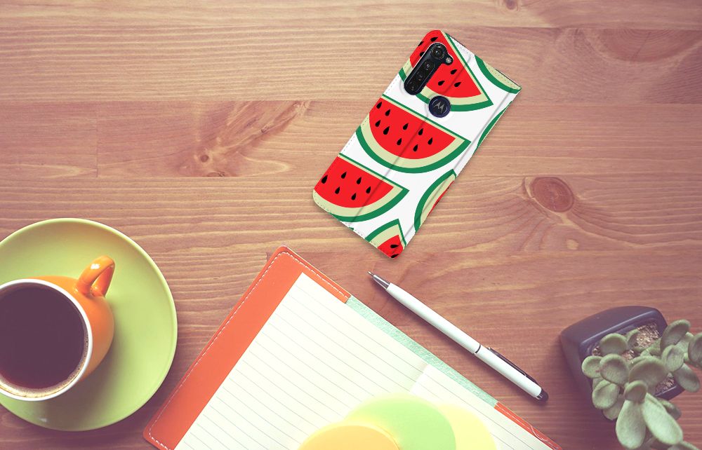 Watermeloenen zijn uitstekende dorstlessers, misschien dat je daarom juist in de zomermaanden extra enthousiast raakt van dit design hoesje Watermelons. Jij blijft gezond als je zo nu en dan een watermeloen neemt, jouw smartphone blijft in tact als je er deze Motorola Moto G Pro Flip Style Cover omheen doet. De stand case beschermt jouw telefoon aan alle kanten en beschikt over een 1 opbergvakje en een speciale standaard. Het hoesje wordt afgesloten met een magneet aan de binnenzijde. De houder aan de binnenzijde is van TPU. Je kunt ook kiezen voor andere soorten fruit op je hoesje. Kijk maar eens naar onze andere design hoesjes op onze website.