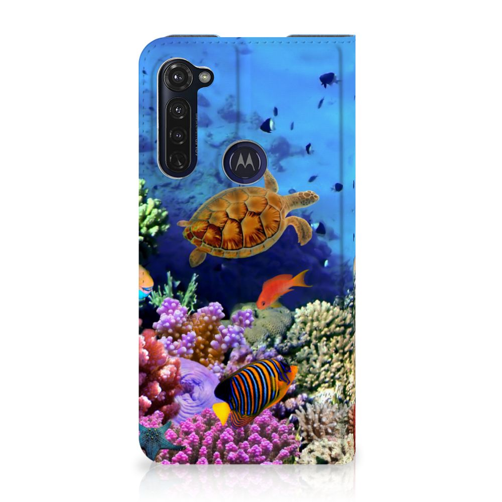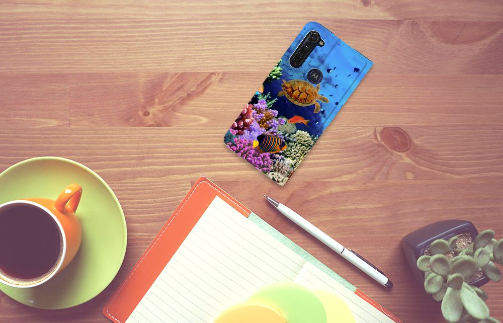 Dit kleurrijke hoesje met tropische Vissen is een ware eyecatcher. Als je aan het duiken bent en je treft een school aan met dit soort opvallende vissen, dan heb je een geweldige ervaring. Maar je hoeft er eigenlijk niet per se het water voor in te duiken. Want wij hebben een schitterende verzameling vissen op dit design hoesje gezet. Met onze zeer geavanceerde printer zetten we de afbeelding van vissen op alle zijden van de Motorola Moto G Pro Hoesje maken. De case heeft aan de binnenkant een vakje waarin je jouw creditcard of ander pasje kwijt kunt. Ga je een dagje vissen, dan hoef je de portemonnee dus ook niet op zak te hebben. Verder is je telefoon natuurlijk maximaal beschermd met deze stand case met print van tropische vissen. De houder aan de binnenzijde van het design hoesje met vissen print is van TPU.