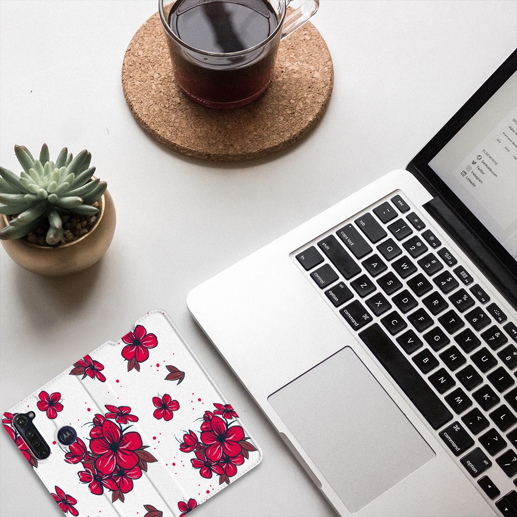 Wie denkt aan Japan, denkt al gauw aan die prachtige kersenbomen die in het begin van de lente in bloei staan en het land hullen in een prachtige zee van bloesem. Wie elke dag wil genieten van deze mooie kersenbloesem, kan natuurlijk ook kiezen voor dit mooie telefoonhoesje! Dankzij de witte achtergrond knallen de rode bloemetjes er mooi uit. Dit blossom red-design staat op een Smart Cover voor de Motorola Moto G Pro. Dit populaire smartphonehoesje met het heeft één vakje voor een pasje of briefgeld en is aan alle zijden bedrukt. Met de standcase zet je je telefoon gemakkelijk neer, zodat je je handen vrij hebt als je bijvoorbeeld een video wilt kijken. De binnenkant van de standcase is van grijs PU-leer. Dat is fijn, omdat je daardoor niet snel vlekken ziet op je hoesje.