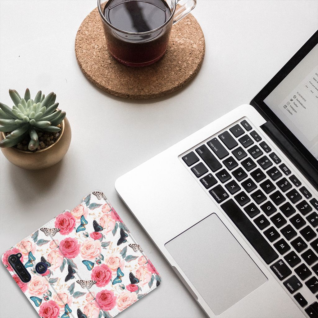 Ben je op zoek naar een uniek telefoonhoesje voor je Motorola Moto G Pro? Dan ben je bij B2C Telecom aan het juiste adres! Speciaal voor jou hebben we dit prachtige Butterfly Roses design in onze collectie hoesjes opgenomen. Het design wordt bedrukt op een Smart Cover en heeft een vakje aan de binnenkant voor een pasje. Het fijne aan dit hoesje is dat je het als standaard neer kunt zetten. Hierdoor geniet je nog meer als je een filmpje aan het kijken bent op je telefoon. Het hoesje wordt afgesloten door magneten aan de binnenkant. Wil je dit design hoesje nog iets extra's geven? Voeg dan gratis je naam of een quote toe! Is dit design hoesje toch niet helemaal wat je zocht? Ontwerp dan zelf een hoesje in ons ontwerpprogramma.