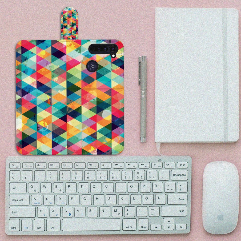 Dit design hoesje bestaat uit ruitjes in alle kleuren van de regenboog, wat inderdaad een beetje druk is, en waar je echt een liefhebber van moet zijn. Feit is dat dit hoesje zeker opvalt en als je daarvan houdt, is dit het perfecte Telefoon Hoesje voor jou! Daarnaast is dit Motorola Moto G Pro hoesje een bookcase, wat inhoudt dat jouw telefoon aan alle zijdes beschermd is. En deze bookcase is ook nog eens aan alle kanten bedrukt, zodat het wel mooi blijft, zelfs het lipje van het hoesje is bedrukt met het ruitjes patroon. De buitenkant van dit designhoesje is gemaakt van PU-leer. De binnenkant daarentegen is gemaakt van TPU wat de telefoon goed beschermt in het geval dat hij op de grond zou vallen. Ook kun je jouw pasjes allemaal kwijt in dit hoesje zodat jij al jouw belangrijke bezittingen bij de hand hebt.