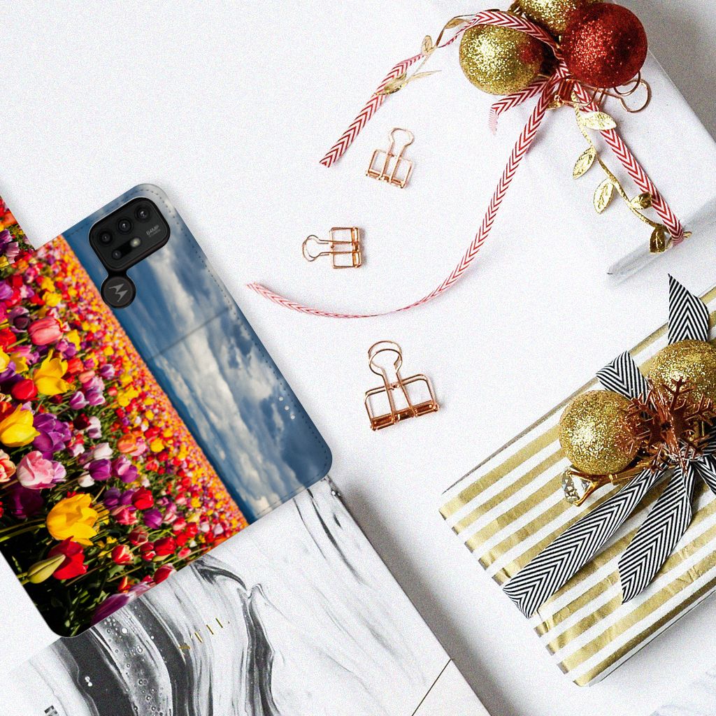 Als je trots bent op Nederland en dit overal wilt laten zien, dan is dit hét telefoonhoesje voor jou. Tulpen zijn een belangrijk Nederlands symbool en dit tulpenveld is dan ook typisch Nederlands. Daarnaast zijn de tulpen op dit Motorola Moto G10 | G20 | G30 Hoesje erg kleurrijk en heb je dus een vrolijk telefoonhoesje. Ook zul je deze tulpen terugzien aan alle kanten van het boekhoesje. Het boekhoesje wordt namelijk aan alle zijden met duurzame inkt bedrukt. Het hoesje is erg duurzaam; naast het gebruik van de duurzame inkt, heeft het hoesje ook een lange levensduur. Bovendien zorgt het boekhoesje ervoor dat jouw Motorola Moto G10 | G20 | G30 een stuk langer meegaat doordat hij niet kapot kan vallen.