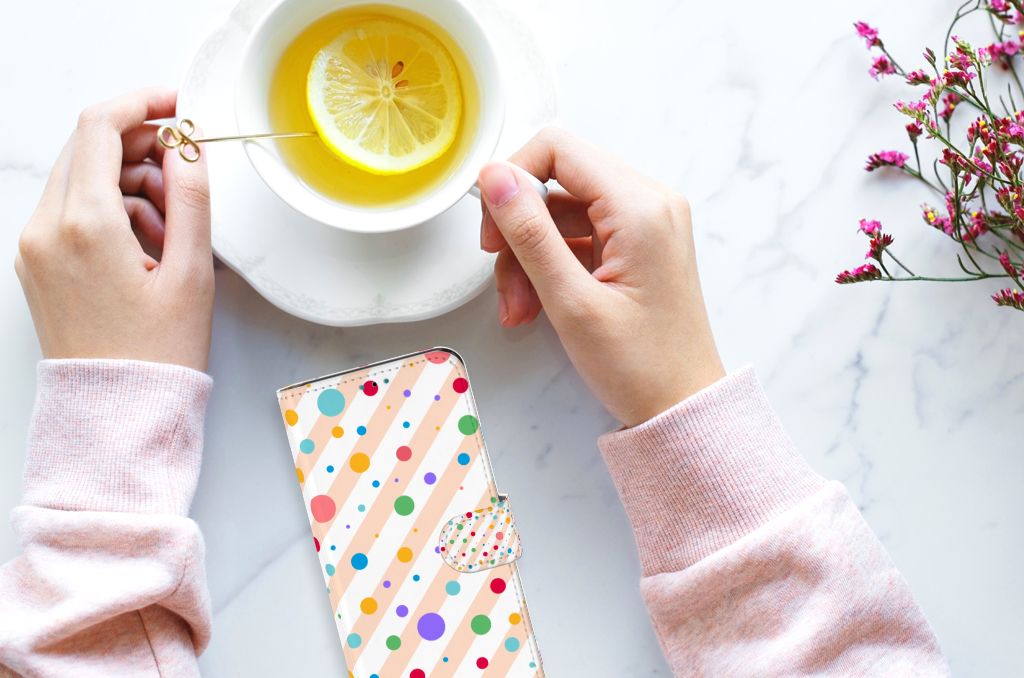 Een Motorola Moto G10 | G20 | G30 Telefoon Hoesje met verschillende kleuren stippen is een schitterende bescherming van jouw smartphone. Het boekhoesje met het design Dots in alle kleuren van de regenboog komt voor jou als geroepen. Maak je geen gebruik van dit zeer mooie hoesje, dan kan het met jouw smartphone een beetje beroerd aflopen. Dit mooie boekhoesje met verschillende kleuren stippen zorgt voor een volledige bescherming van je smartphone en wordt aan alle zijden bedrukt. Sommige stippen staan ook op het magnetische lipje aan de buitenzijde. Verder is de houder aan de binnenzijde van TPU. Jouw telefoon is dus zeer goed opgeborgen en kan geen kant op. Met een hoesje met stippen in verschillende kleuren op alle zijden blijft jouw telefoon volledig in tact. Heb je liever een boekhoesje met stippen in andere opvallende kleuren? Ontwerp dan zelf case met je eigen foto’s en teksten!