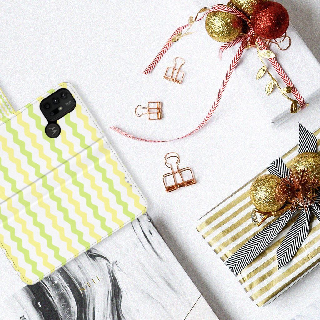 Dit Waves Yellow design hoesje met licht groene en gele golven is speciaal ontworpen voor jouw telefoon. We hebben een vleugje lichtgeel toegevoegd, zodat de case er een beetje spannender en leuker uitziet. Dit licht groene hoesje met licht groene golven ziet er oogstrelend uit. Het wordt in ons eigen magazijn bedrukt, in zeer goede kwaliteit inkt. Wij kunnen dus een zeer duurzaam hoesje met licht groene golven garanderen. Dit hele mooie Motorola Moto G10 | G20 | G30 Telefoon Hoesje heeft vele extra’s. Is dit licht groene design hoesje je op het lijf geschreven? Grijp dan nu je kans. Een boekhoesje met lichtgroene golven beschermt jouw telefoon aan alle zijden en beschikt over meerdere houders voor pasjes en briefgeld. De case sluit perfect af met het magnetisch lipje aan de buitenkant. De houder aan de binnenzijde is van het flexibele TPU. Alle zijden van het licht groene hoesje met golven worden bedrukt, inclusief het lipje.