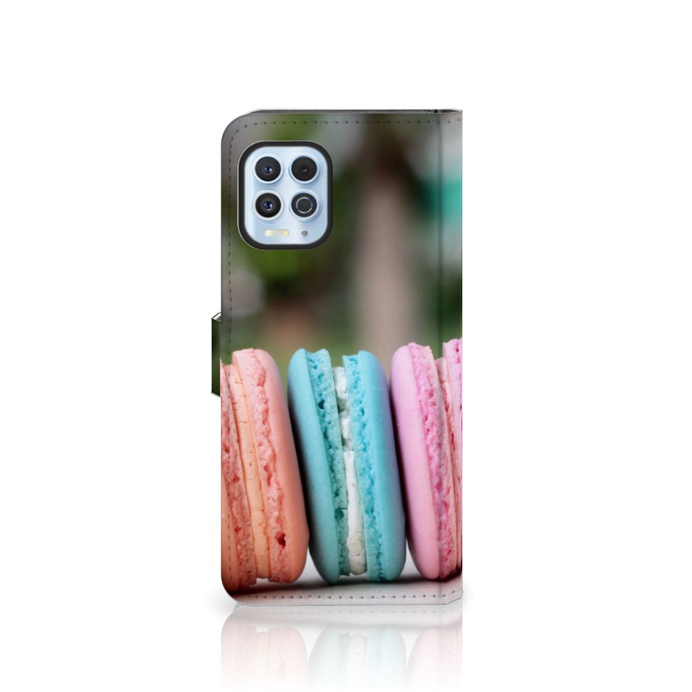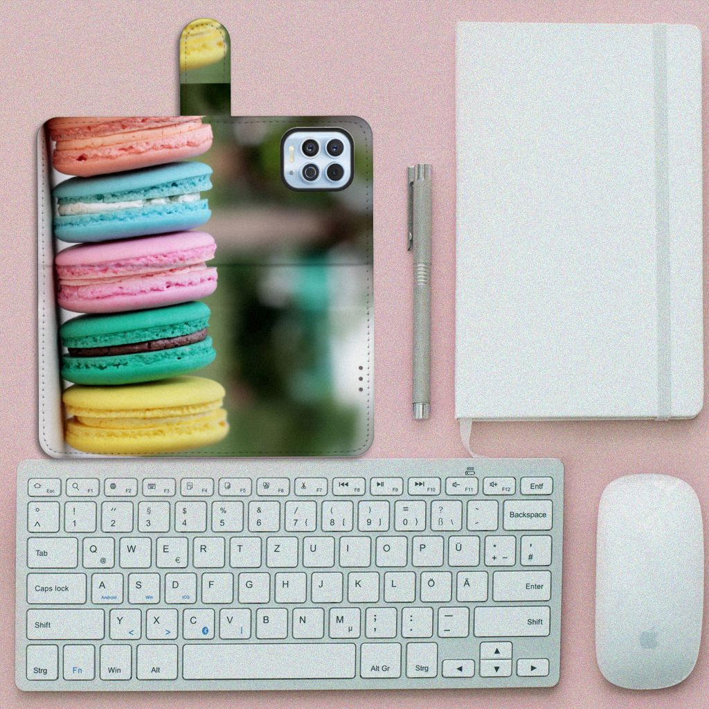 Dit hoesje met macarons is een zeer opvallende bescherming voor jouw smartphone. Macarons zijn Franse koekjes: kleine, rond en luchtig. Ze zijn aan elkaar geplakt met een zachte vulling. Ze worden in veel verschillende smaken gemaakt, herkenbaar aan de verschillende kleuren zoals chocolade (donkerbruin), mokka (middenbruin), kersen (rood), pistache (groen), aardbei (roze), framboos (karmijn), citroen (geel) en kokos (roomwit). Deze kleuren kun je natuurlijk ook zien op dit fraaie design hoesje met macarons. Heb je altijd al een Motorola Moto G100 Book Cover willen hebben met macarons? Grijp dan nu je kans. Een boekhoesje heeft zeer veel goede eigenschappen, zoals opbergvakjes aan de binnenkant en een magnetische sluiting in de vorm van een lipje aan de buitenzijde. Dit design hoesje met macarons wordt aan alle zijden bedrukt, zelfs het lipje krijgt een afbeelding van een macaron. De houder aan de binnenkant van het hoesje is van TPU.