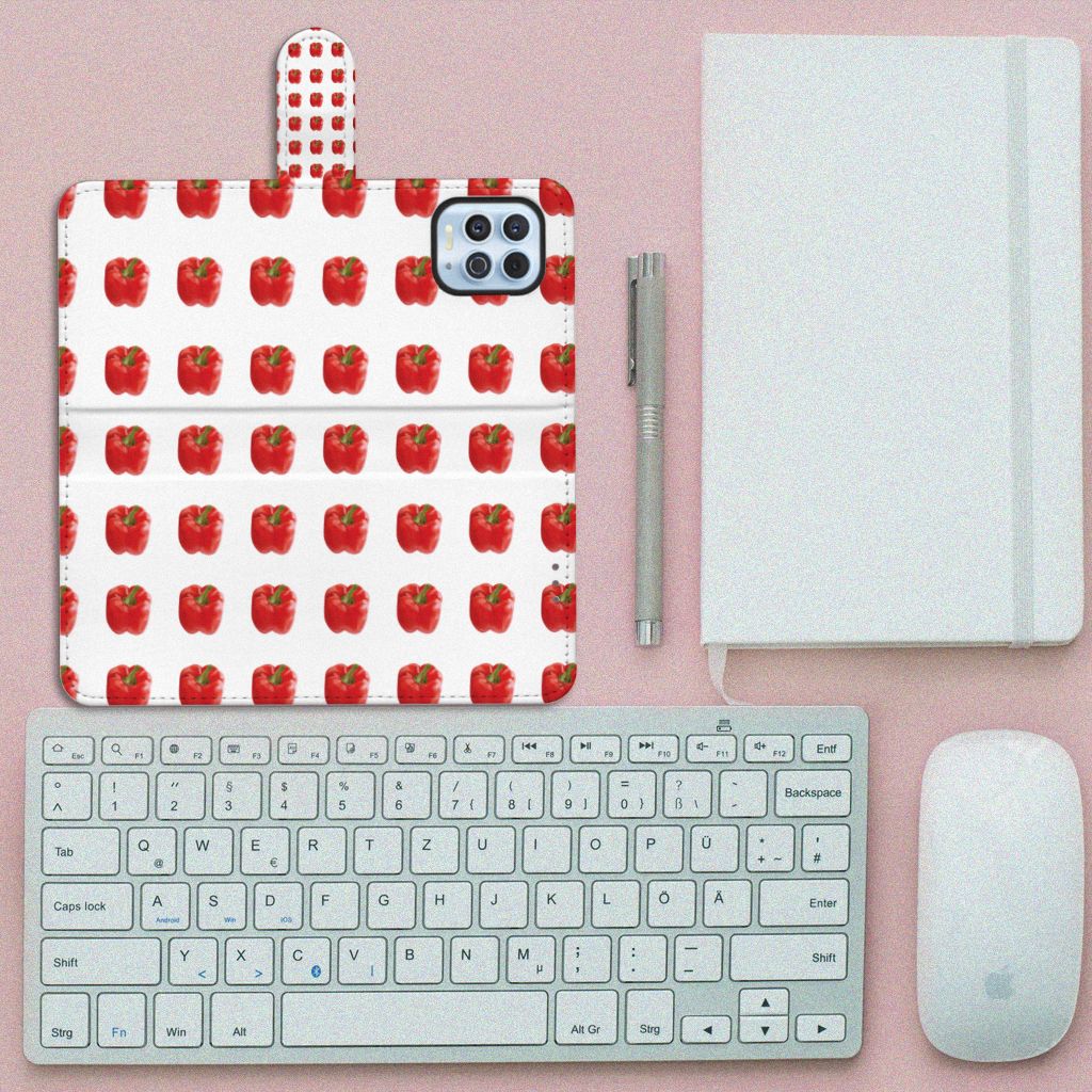 Er zit pit in jouw Motorola Moto G100 Book Cover dankzij dit design met rode paprika’s. Paprika’s zijn er in allerlei kleuren en vormen en ze hebben gemeen dat ze heel erg gezond zijn. De rode paprika’s op deze case staan op een grijs met witte geblokte achtergrond en vormen een opvallende verschijning. Heb jij ooit iemand in je nabije omgeving rond zien lopen met een design hoesje met rode paprika’s? Waarschijnlijk niet. Dit boekhoesje met rode paprika’s beschermt jouw telefoon aan alle zijden en beschikt over verschillende opbergvakjes voor pasjes en briefgeld. De case sluit perfect af met het magnetische lipje aan de buitenkant. Zeker weten dat je met dit hoesje met rode paprika’s een smartphone accessoire te pakken hebt waarmee je jezelf in de schijnwerpers zet. De houder aan de binnenzijde van het boekhoesje met rode paprika’s is van TPU. Als je andere kleuren paprika’s op je hoesje wilt, raden we je aan ons assortiment design hoesjes te bekijken of zelf een hoesje te ontwerpen.