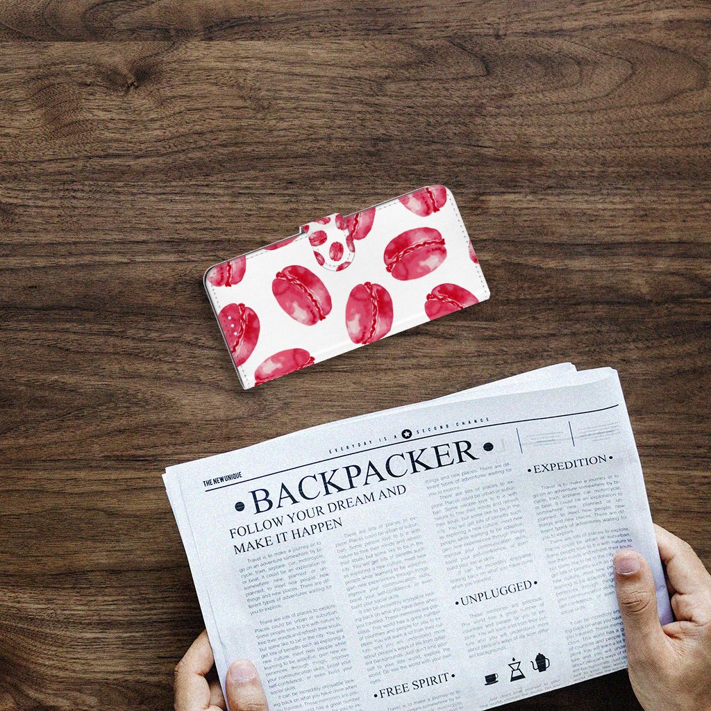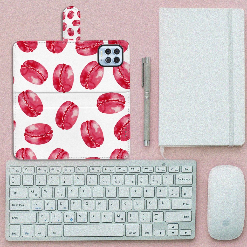 Dit hoesje met Pink Macarons is een zeer opvallende bescherming voor jouw smartphone. Macarons zijn Franse koekjes: kleine, rond en luchtig. Ze worden in veel verschillende smaken gemaakt, herkenbaar aan de verschillende kleuren zoals chocolade (donkerbruin), mokka (middenbruin), kersen (rood), pistache (groen), aardbei (roze), framboos (karmijn). Deze kleuren kun je niet allemaal zien op dit fraaie design hoesje met roze macarons. Heb je altijd al een Motorola Moto G100 Book Cover willen hebben met roze macarons? Grijp dan nu je kans. Een boekhoesje heeft zeer veel goede eigenschappen, zoals opbergvakjes aan de binnenkant en een magnetische sluiting in de vorm van een lipje aan de buitenzijde. Dit design hoesje met roze macarons wordt aan alle zijden bedrukt, zelfs het lipje krijgt een afbeelding van een roze macaron. De houder aan de binnenkant van het hoesje is van TPU.