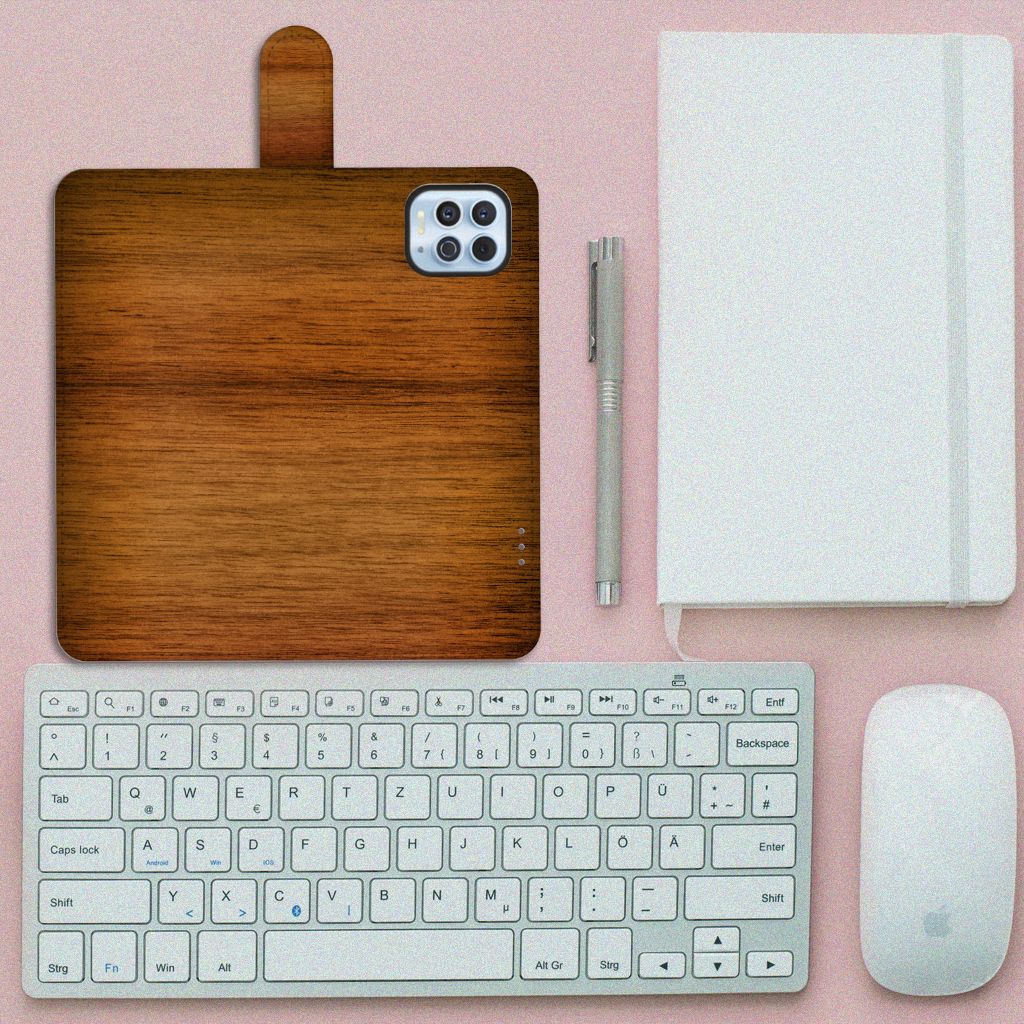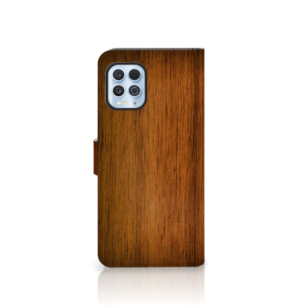 Motorola Moto G100 Book Style Case met pasjeshouder Donker Hout