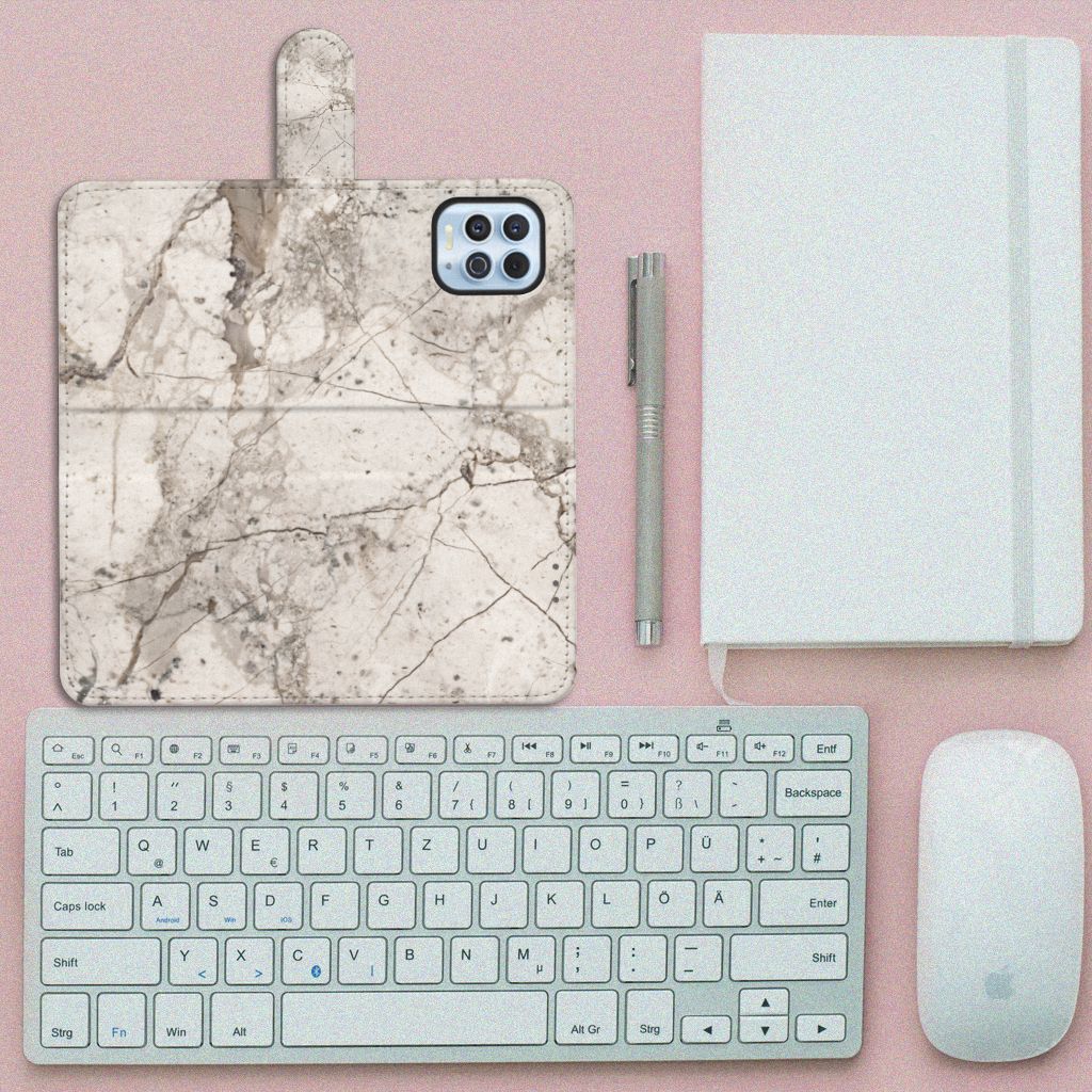 Motorola Moto G100 Bookcase met pasjes Marmer Beige