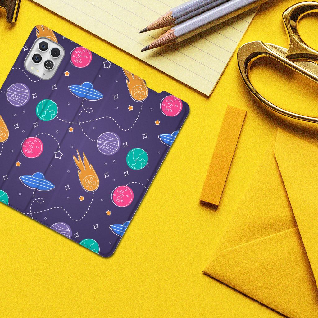 Ben je een beetje geïnteresseerd in buitenaards leven? Dan kan je wel eens enthousiast raken van deze Motorola Moto G100 Hippe Standcase met Space print. Dus mensen die van science fiction houden zullen deze case ongetwijfeld mooi vinden. Er zijn verschillende planeten en vliegende schotels te ontdekken in dit design hoesje. Dit kunstwerkje is voor heel weinig geld te bestellen op onze website. Je krijgt er maximale bescherming van je smartphone voor terug. De stand case beschermt jouw telefoon aan alle kanten en beschikt over een 1 opbergvakje en een speciale standaard. Het hoesje wordt afgesloten met een magneet aan de binnenzijde. De houder aan de binnenzijde is van TPU. Je zult ontdekken dat dit hele stevige telefoonhoesje een heel goede bescherming biedt tegen alle vormen van schade. Met dit hoesje hoef je niet bang te zijn dat er krassen op je design komen of scheuren in je scherm.