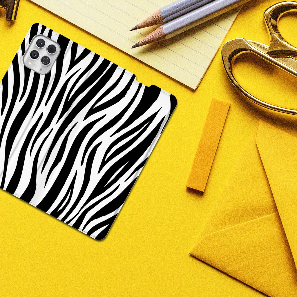 Deze Motorola Moto G100 Hoesje maken met zwart en witte zebra strepen kan exclusief in het bezit van jou komen. Zeker als je er zelf nog unieke teksten en/of beelden aan toevoegt van jezelf. Je hoesje krijgt dan een eigen identiteit, net zoals de witte en zwarte strepen uniek zijn bij iedere Zebra. Deze zijn te vergelijken met de vingerafdrukken bij de mens. De strepen en patronen zijn nooit identiek aan die van een andere zebra. Ben jij toe aan een unieke stand case? Pak dan dit design met zebra strepen als basis. Het stand hoesje is van PU-leer (buitenzijde) en TPU (binnenzijde) en beschikt over een houder voor pasjes en briefgeld. Verder is dit hoesje met zebra print voorzien van magneten aan de binnenzijde. Een zebra gebruikt de strepen ook om zich te camoufleren in de omgeving om zo uit het zicht te blijven van de roofdieren. Jij zorgt voor de perfecte bescherming van je smartphone met dit design hoesje in zebra kleuren.