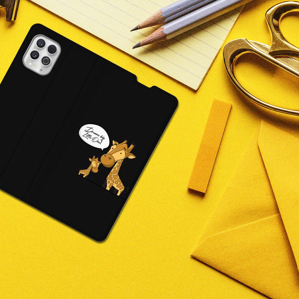 Ben je op zoek naar een uniek telefoonhoesje voor je Motorola Moto G100? Dan ben je bij B2C Telecom aan het juiste adres! Speciaal voor jou hebben we dit prachtige Giraffe design in onze collectie hoesjes opgenomen. Het design wordt bedrukt op een Magnet Case en heeft een vakje aan de binnenkant voor een pasje. Het fijne aan dit hoesje is dat je het als standaard neer kunt zetten. Hierdoor geniet je nog meer als je een filmpje aan het kijken bent op je telefoon. Het hoesje wordt afgesloten door magneten aan de binnenkant. Wil je dit design hoesje nog iets extra's geven? Voeg dan gratis je naam of een quote toe! Is dit design hoesje toch niet helemaal wat je zocht? Ontwerp dan zelf een hoesje in ons ontwerpprogramma.