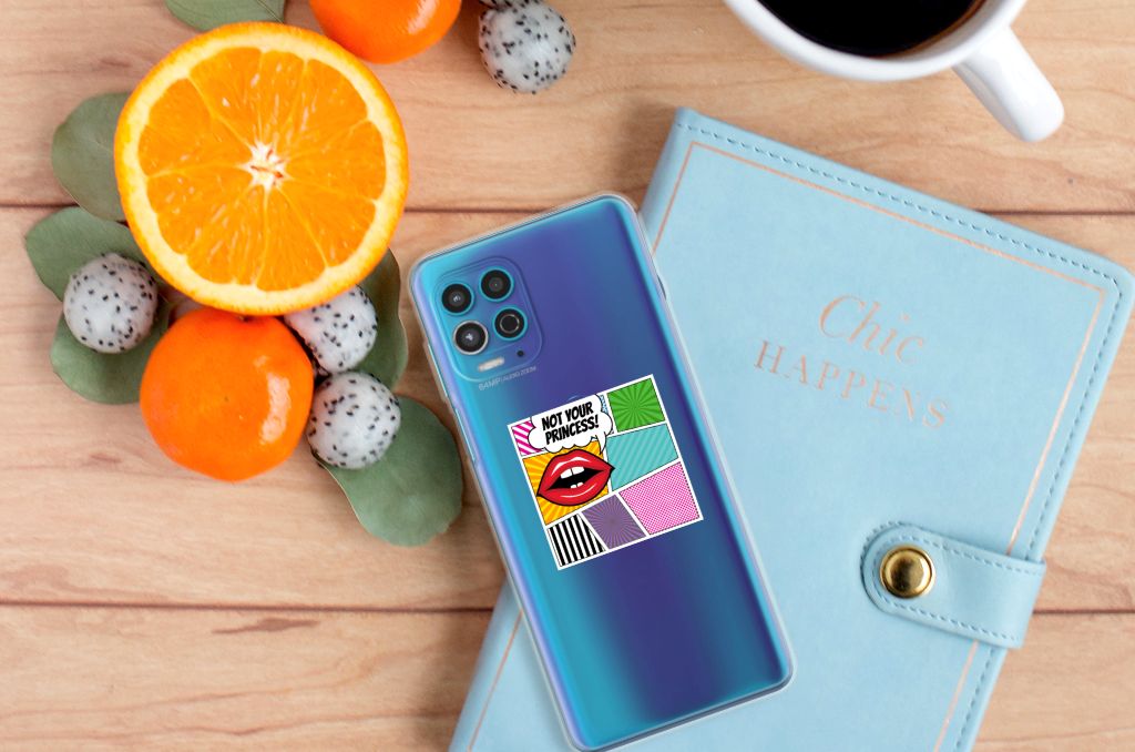 Ben je op zoek naar een uniek telefoonhoesje voor je Motorola Moto G100? Dan ben je bij B2C Telecom aan het juiste adres! Speciaal voor jou hebben we dit prachtige Popart Princess design in onze collectie hoesjes opgenomen. Het design wordt bedrukt op een Silicone Back Cover en is gemaakt van flexibel rubber. Het design wordt alleen aan de bovenkant van het hoesje bedrukt en de randen blijven transparant. Aan de zijkanten zijn uitsparingen gemaakt waardoor je met gemak alle knoppen en poorten kunt bedienen. Wij adviseren om dit hoesje in combinatie met een screenprotector te gebruiken voor een langere levensduur van je telefoon. Wil je dit design hoesje nog iets extra's geven? Voeg dan gratis je naam of een quote toe! Is dit design hoesje toch niet helemaal wat je zocht? Ontwerp dan zelf een hoesje in ons ontwerpprogramma