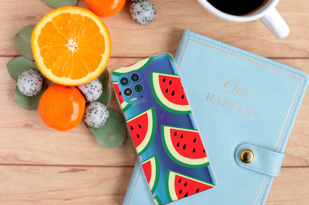 Watermeloenen zijn uitstekende dorstlessers, misschien dat je daarom juist in de zomermaanden extra enthousiast raakt van dit design hoesje Watermelons. Jij blijft gezond als je zo nu en dan een watermeloen neemt, jouw smartphone blijft in tact als je er deze Motorola Moto G100 Siliconen Case omheen doet. Deze tpu case wordt alleen aan de bovenkant bedrukt met watermeloenen is zeer flexibel. De randen van het hoesje blijven transparant. Je kunt ook kiezen voor andere soorten fruit op je hoesje. Kijk maar eens naar onze andere design hoesjes op onze website.