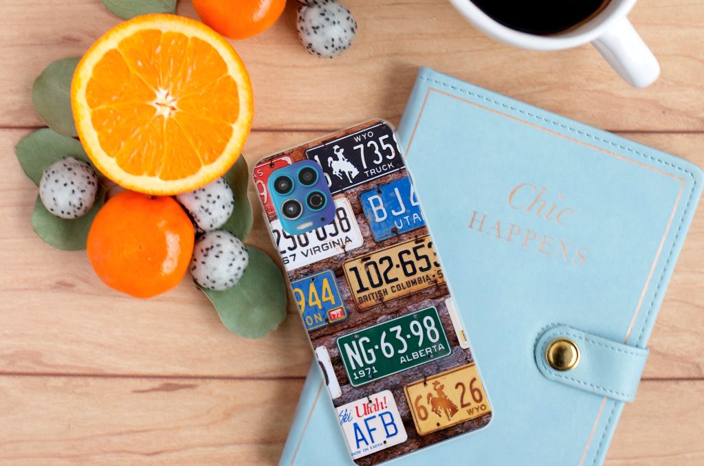 Je gaat waarschijnlijk helemaal uit je plaat met deze Motorola Moto G100 Siliconen Hoesje met foto met Amerikaanse Kentekenplaten. Kentekenplaten van Utah, Virginia, Nebraska, Kansas en Iowa: ze komen allemaal voorbij op deze opzienbarende tpu case, te koop voor een zeer scherpe prijs. Behalve een hoes met een fraaie print van kentekenplaten krijg je ook een case met zeer veel praktische eigenschappen. Zoals het elastische materiaal, dat de ergste schokken en stoten zeer makkelijk opvangt als je telefoon op de grond valt. De case wordt aan de bovenkant bedrukt, terwijl de zijkanten transparant blijven. De case heeft opstaande randen, waardoor het scherm extra beschermd is. Samen met een screenprotector is een betere bescherming dan deze tpu case met Amerikaanse kentekenplaten nauwelijks denkbaar.