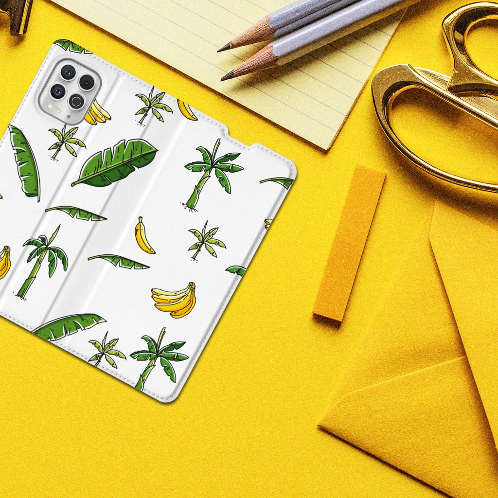 Heb jij al zin om op vakantie te gaan? Dat krijg je hoe dan ook als je één blik werpt op dit vrolijke hoesje voor je Motorola Moto G100 met Banana Tree design. Het fleurige tafereel van bananenbomen, bananenbladeren en bananen doet je gedachten afdwalen naar paradijselijke bountystranden met azuurblauwe zee en helderwitte zandpartijen. Kortom: dit hoesje is goed voor je humeur. Naast het luchtige design zijn daar nog meer redenen voor, want dankzij de stevige materialen weet je zeker dat dit Smart Cover je telefoon altijd optimaal beschermt. De solide hoes van PU-leer beschikt ook over een 1 pashouder en een speciale standaard. Het hoesje wordt afgesloten met een magneet aan de binnenzijde. De houder aan de binnenzijde is van TPU. Alle zijden worden bedrukt. Met dit hoesje breng je jezelf in zomerse sferen en gun je jezelf een krasvrije telefoon.