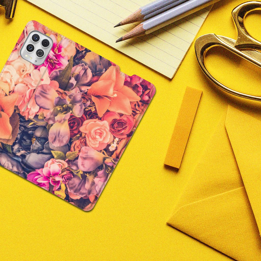 Dit Bosje Bloemen doet een mens en zijn smartphone goed. De oranje, paarse en roze bloemen op deze Motorola Moto G100 Smart Cover geven jouw smartphone een zeer sierlijke uitstraling. Je wordt er ook meteen vrolijker van als je aan het appen, mailen of aan het bellen bent. Valt dan je telefoon op de grond, dan zal er dankzij de stand case met oranje, paarse en roze bloemen geen schade ontstaan. Onze stand cases met oranje, paarse en roze bloemen bieden de allerbeste bescherming en zijn heel praktisch, wat blijkt uit onder meer het vakje aan de binnenkant en de handige standaard waarmee je de smartphone rechtop op tafel neer kunt zetten. De oranje, paarse en roze bloemen passen goed op alle zijden van de case. Op deze stand case van leer en TPU (houder aan de binnenkant) is het ook mogelijk je eigen ontwerp te zetten. In no time maak je zelf een stand case met daarop foto’s van jouw favoriete bloemen.
