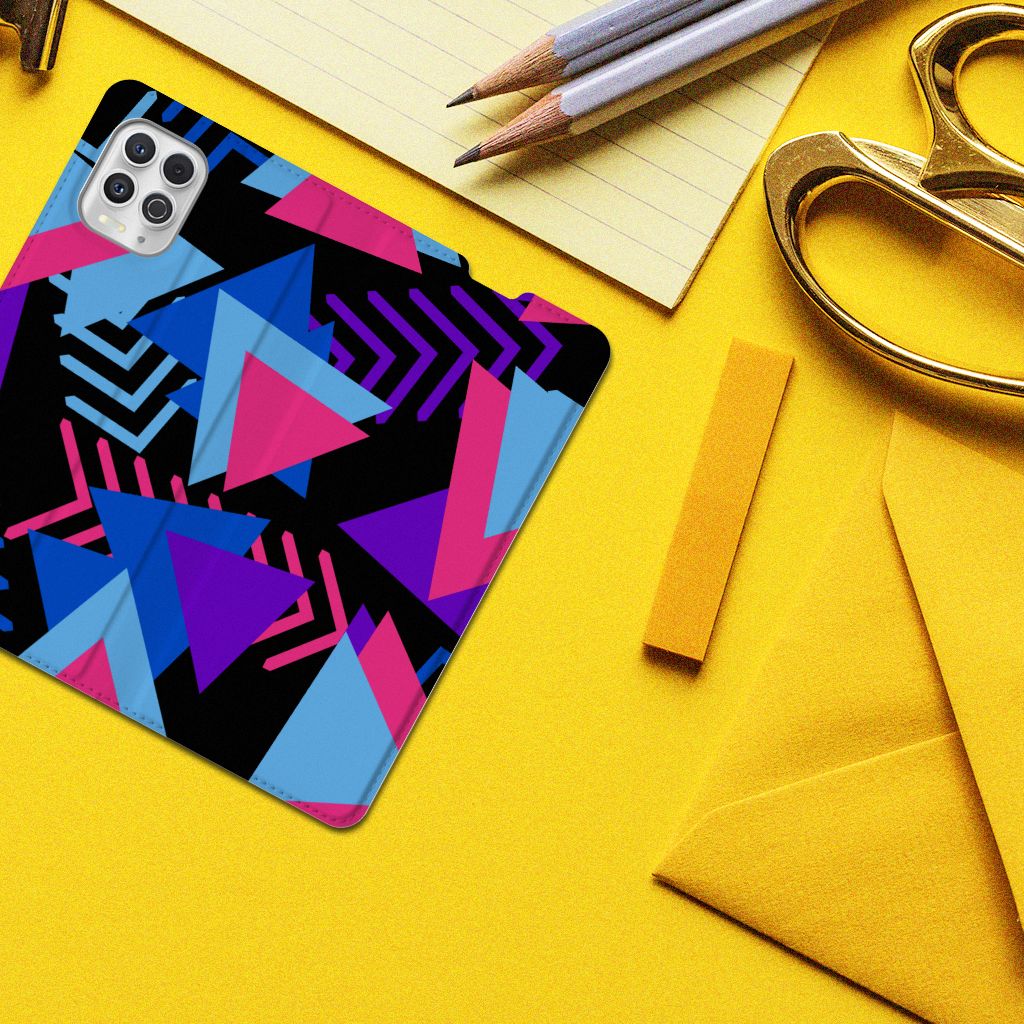 Dit fraaie hoesje met het design Funky Triangle is alles behalve eenvoudig en sober. Dat komt goed uit, want je hebt natuurlijk ook geen doorsnee telefoon gekocht. Mocht je dat wel hebben gedaan, dan wordt hij meteen speciaal als je een Motorola Moto G100 Stand Case koopt voor een spotprijsje. Een ding is zeker: opvallen ga je beslist met dit hoesje met paarse, roze en blauwe driehoeken. Jij zult in je element zijn met dit design hoesje met paarse, roze en blauwe driehoeken, omdat het er schitterend uitziet en jouw telefoon perfect beschermt. Het smartphonehoesje beschermt jouw telefoon aan alle zijden en beschikt over 1 opbergvakje en een speciale standaard. Het hoesje wordt afgesloten met een magneet aan de binnenzijde. De houder aan de binnenzijde is van TPU. Alle zijden van de stand case worden bedrukt. De paarse, roze en blauwe driehoeken maken de case helemaal af.