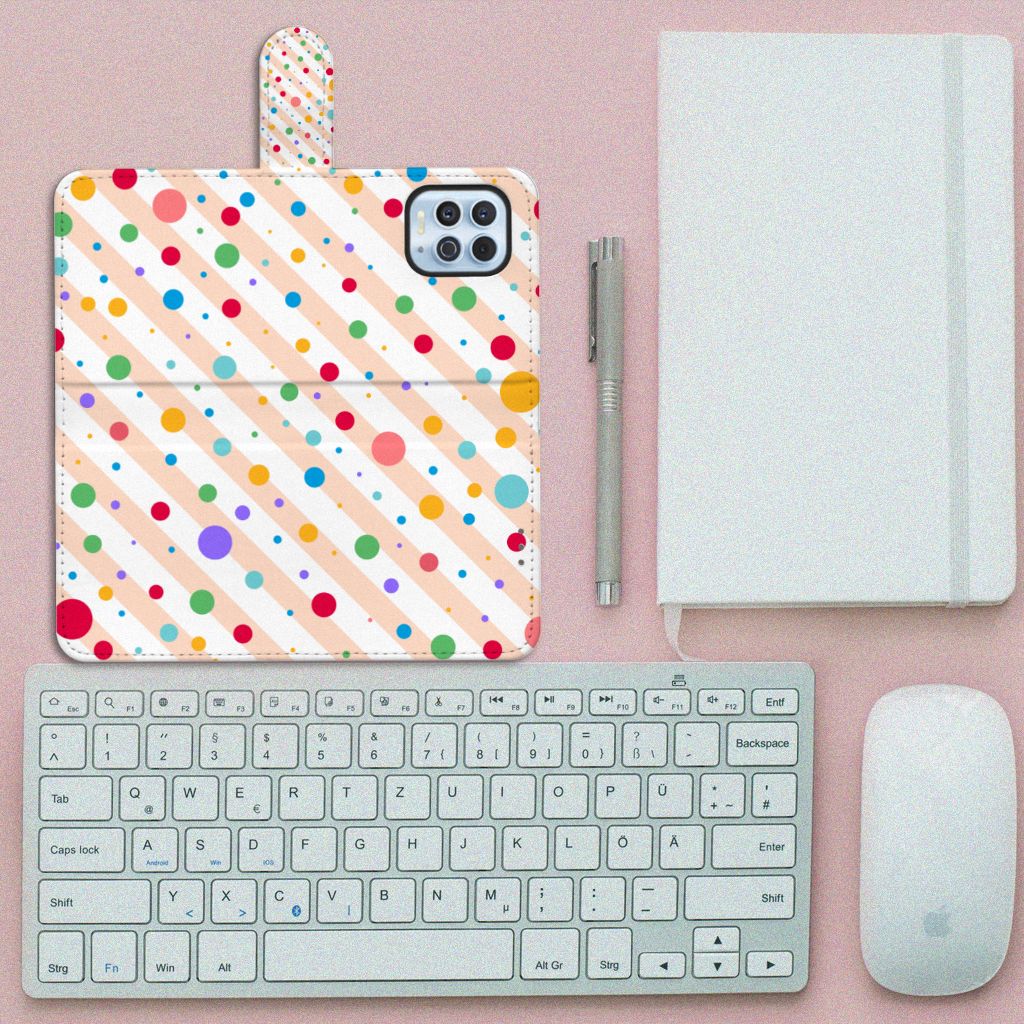 Een Motorola Moto G100 Telefoon Hoesje met verschillende kleuren stippen is een schitterende bescherming van jouw smartphone. Het boekhoesje met het design Dots in alle kleuren van de regenboog komt voor jou als geroepen. Maak je geen gebruik van dit zeer mooie hoesje, dan kan het met jouw smartphone een beetje beroerd aflopen. Dit mooie boekhoesje met verschillende kleuren stippen zorgt voor een volledige bescherming van je smartphone en wordt aan alle zijden bedrukt. Sommige stippen staan ook op het magnetische lipje aan de buitenzijde. Verder is de houder aan de binnenzijde van TPU. Jouw telefoon is dus zeer goed opgeborgen en kan geen kant op. Met een hoesje met stippen in verschillende kleuren op alle zijden blijft jouw telefoon volledig in tact. Heb je liever een boekhoesje met stippen in andere opvallende kleuren? Ontwerp dan zelf case met je eigen foto’s en teksten!
