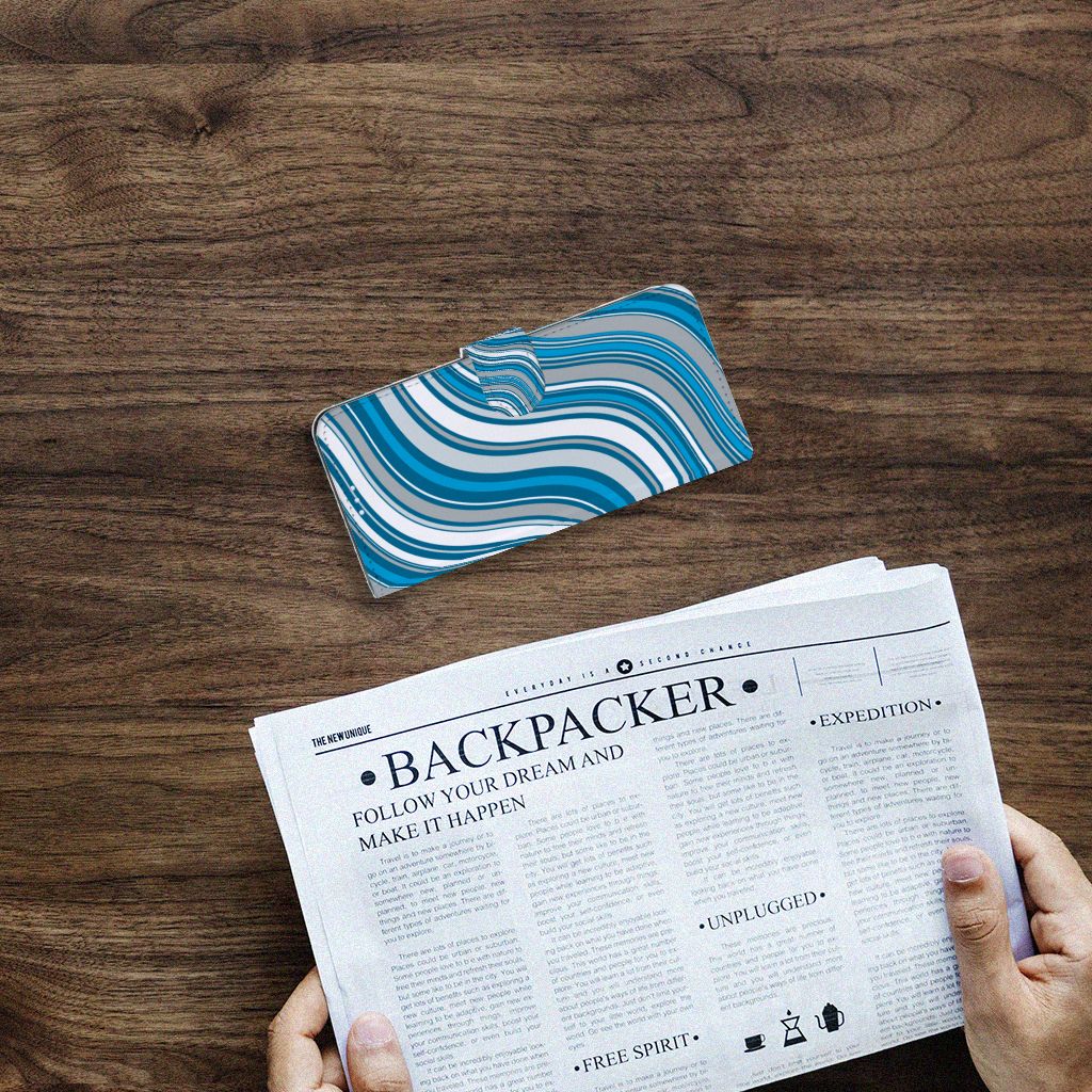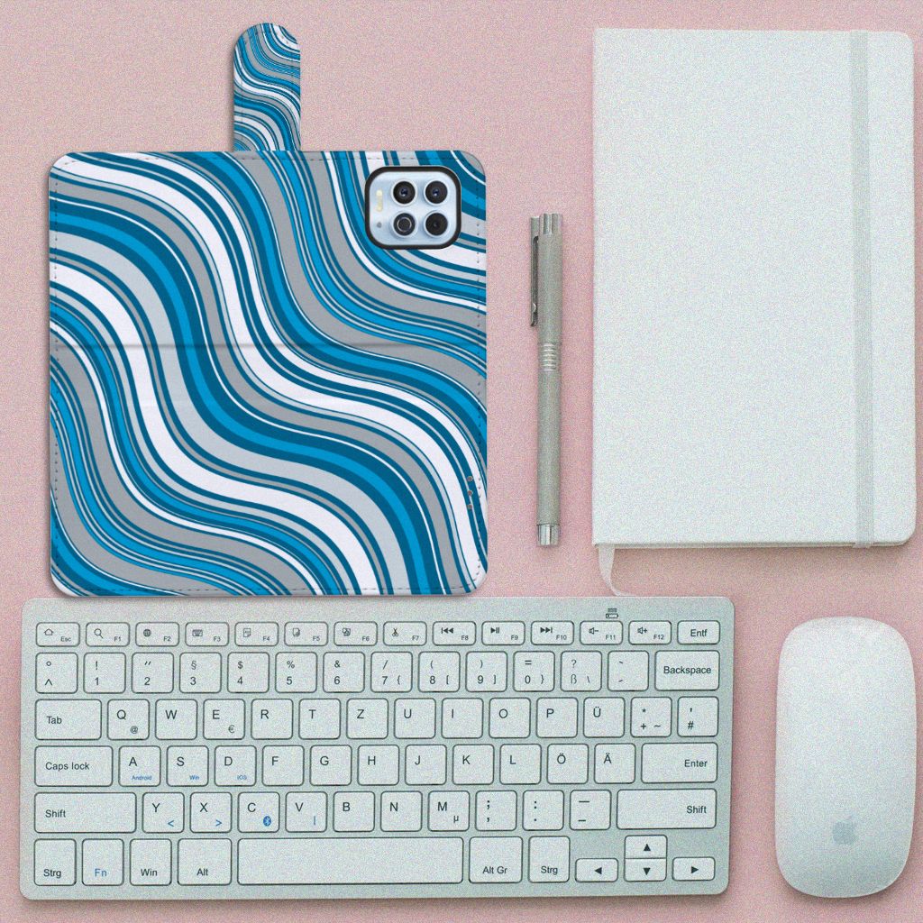 Zeer cool, dit hoesje met vooral blauwe kleuren, die in een golvende beweging jouw telefoon van een mooie uitstraling voorzien. Tijdens een zonnige vakantie aan zee is jouw smartphone perfect beschermd met dit telefoonhoesje. Het design Waves Blue van dit smartphone hoesje doet lichtjes denken aan een lolly, waarmee je een klein kind zeer blij maakt. Jouw Motorola Moto G100 zal er ook zeer vrolijk uitzien samen met dit design hoesje. De witte en grijze kleuren staan in mooi contrast met het blauw, waardoor de uitstraling van deze accessoire zeer mooi is. Ook voor andere kleuren kun je natuurlijk uitstekend terecht in ons assortiment. Het design staat op een boekhoesje. Dit Telefoon Hoesje beschermt jouw telefoon aan alle zijden en beschikt over verschillende opbergvakjes voor pasjes en briefgeld. De case sluit perfect af met het lipje aan de buitenkant. De houder aan de binnenzijde is van TPU.