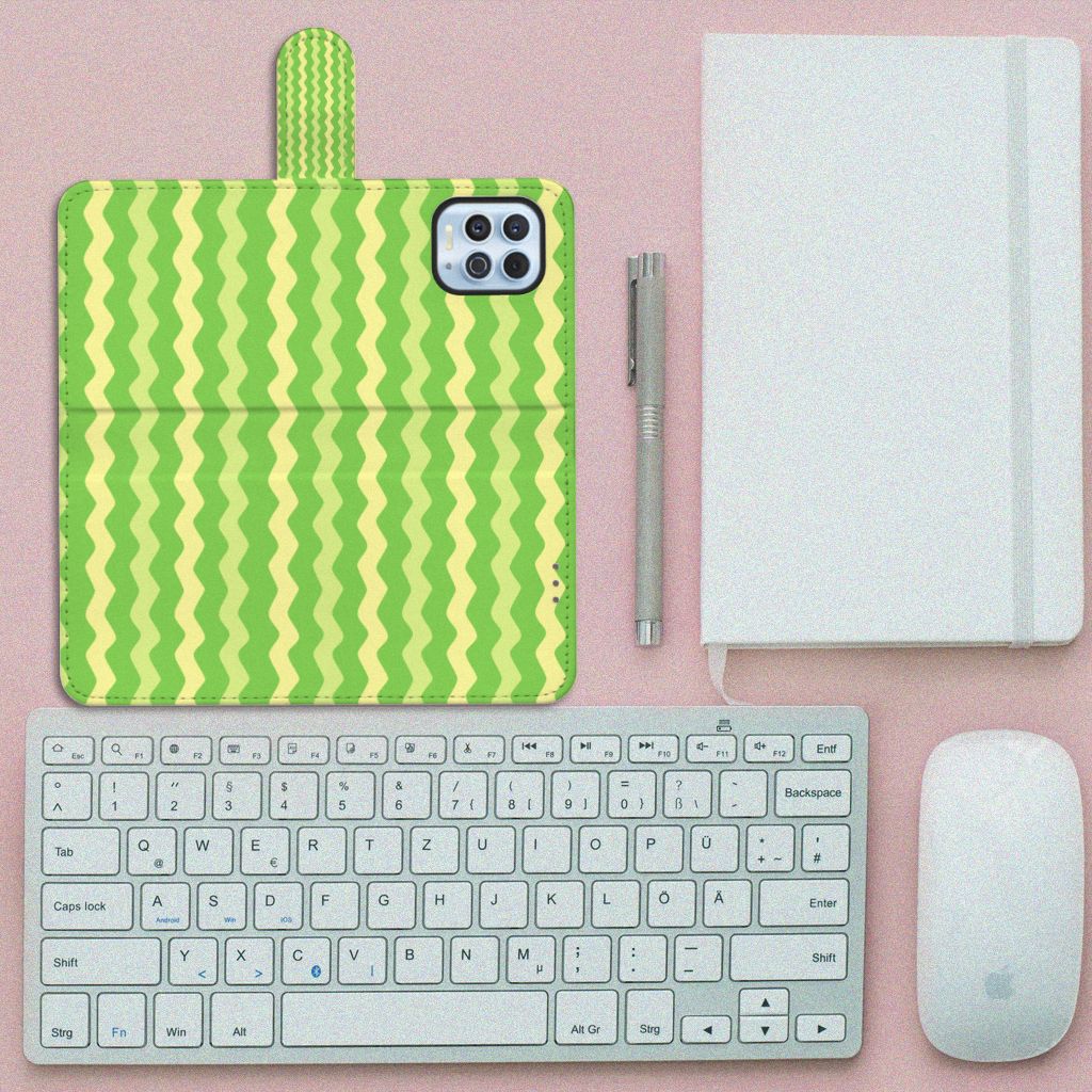 Dit groene design hoesje met groene golven is speciaal ontworpen voor jouw telefoon. We hebben een vleugje geel toegevoegd, zodat er sprake is van variatie. Dit Waves Green hoesje ziet er flitsend uit. Dat kan ook niet anders, als je weet dat we veel energie steken in het bedenken van originele designs. Een heel strak Motorola Moto G100 Telefoon Hoesje, met zeer veel opties. Past dit groene design hoesje met golven goed bij jou? Bestel het dan vandaag nog, tegen zeer lage kosten. Het design staat op een boekhoesje. Dit smartphonehoesje beschermt jouw telefoon aan alle zijden en beschikt over verschillende opbergvakjes voor pasjes en briefgeld. De case sluit perfect af met het lipje aan de buitenkant. De houder aan de binnenzijde is van TPU. Alle zijden van het groene hoesje met golven worden bedrukt, inclusief het lipje.