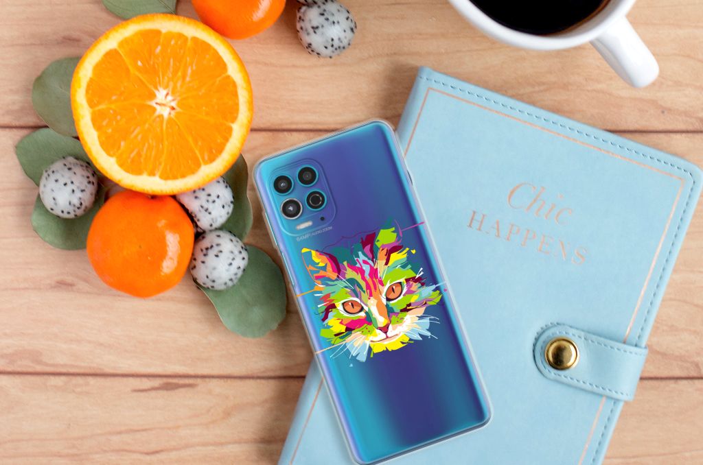 Ben je op zoek naar een uniek telefoonhoesje voor je Motorola Moto G100? Dan ben je bij B2C Telecom aan het juiste adres! Speciaal voor jou hebben we dit prachtige Cat Color design in onze collectie hoesjes opgenomen. Het design wordt bedrukt op een Telefoonhoesje met Naam en is gemaakt van flexibel rubber. Het design wordt alleen aan de bovenkant van het hoesje bedrukt en de randen blijven transparant. Aan de zijkanten zijn uitsparingen gemaakt waardoor je met gemak alle knoppen en poorten kunt bedienen. Wij adviseren om dit hoesje in combinatie met een screenprotector te gebruiken voor een langere levensduur van je telefoon. Wil je dit design hoesje nog iets extra's geven? Voeg dan gratis je naam of een quote toe! Is dit design hoesje toch niet helemaal wat je zocht? Ontwerp dan zelf een hoesje in ons ontwerpprogramma.