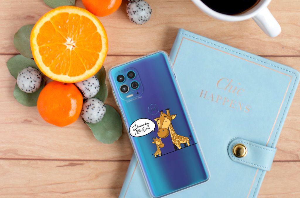 Ben je op zoek naar een uniek telefoonhoesje voor je Motorola Moto G100? Dan ben je bij B2C Telecom aan het juiste adres! Speciaal voor jou hebben we dit prachtige Giraffe design in onze collectie hoesjes opgenomen. Het design wordt bedrukt op een Telefoonhoesje met Naam en is gemaakt van flexibel rubber. Het design wordt alleen aan de bovenkant van het hoesje bedrukt en de randen blijven transparant. Aan de zijkanten zijn uitsparingen gemaakt waardoor je met gemak alle knoppen en poorten kunt bedienen. Wij adviseren om dit hoesje in combinatie met een screenprotector te gebruiken voor een langere levensduur van je telefoon. Wil je dit design hoesje nog iets extra's geven? Voeg dan gratis je naam of een quote toe! Is dit design hoesje toch niet helemaal wat je zocht? Ontwerp dan zelf een hoesje in ons ontwerpprogramma.