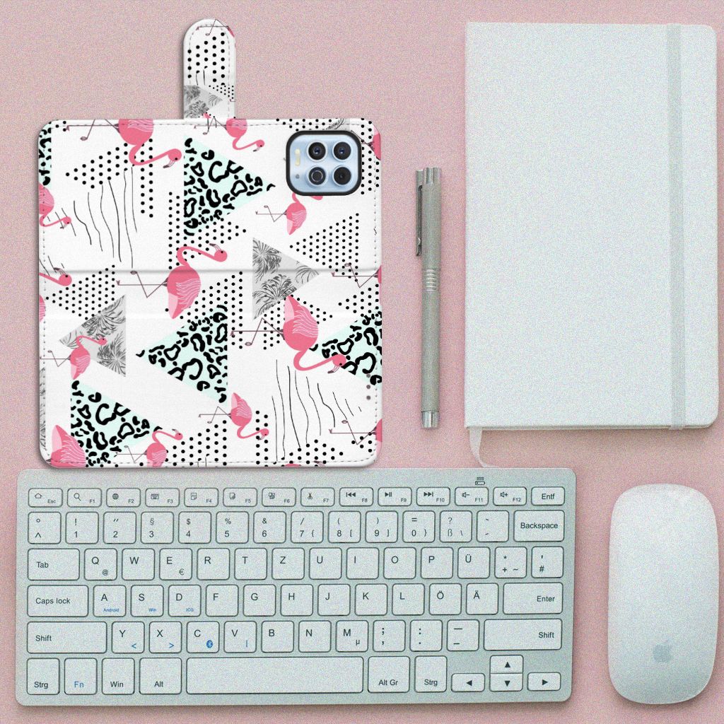 Motorola Moto G100 Telefoonhoesje met magnetische lipje als sluiting Flamingo Triangle