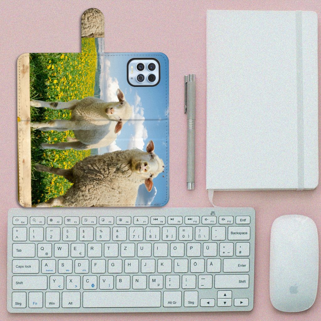 Motorola Moto G100 Telefoonhoesje met Pasjes Schaap en Lammetje