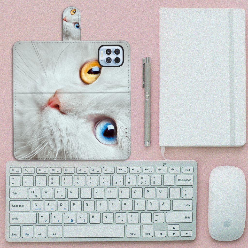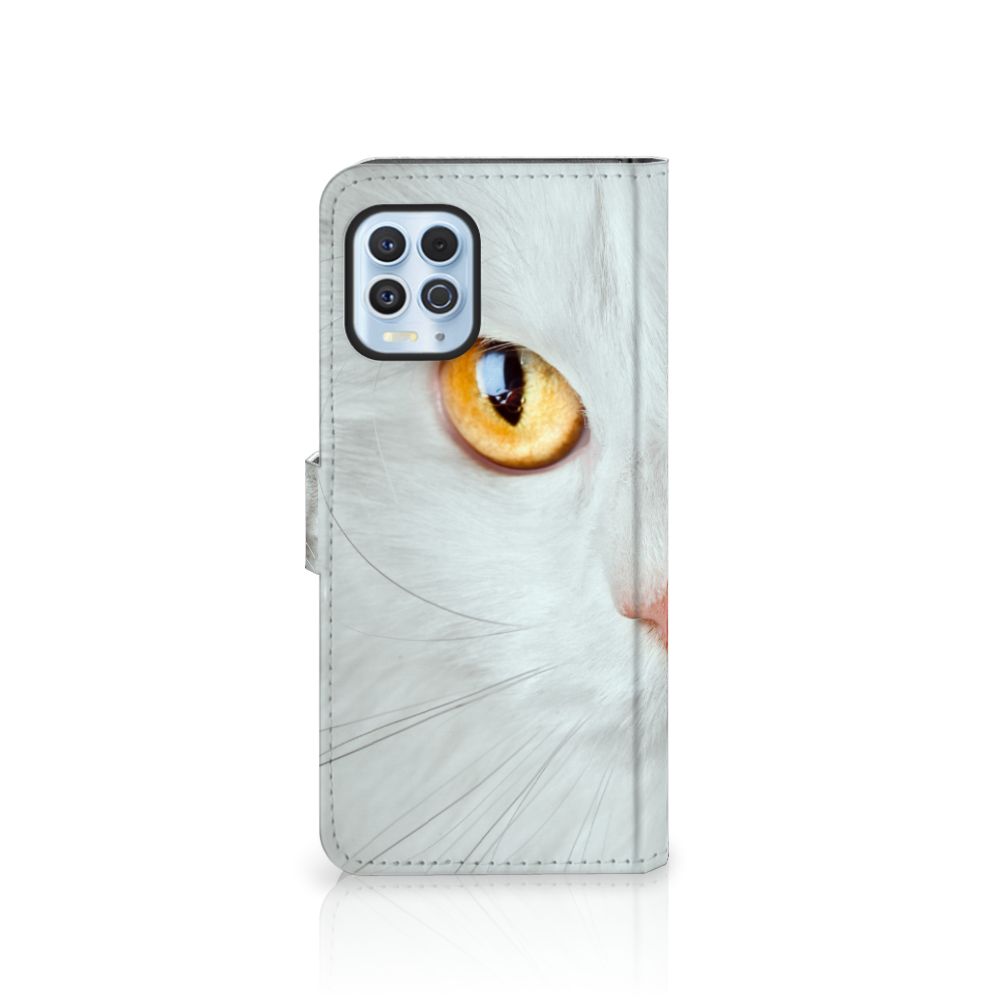 Motorola Moto G100 Telefoonhoesje met magnetisch lipje als sluiting Witte Kat