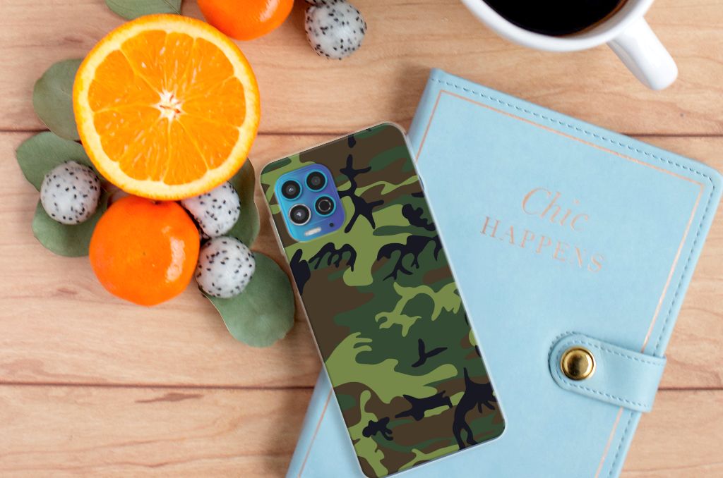 Voel je jezelf verbonden met het leger, dan zal deze Motorola Moto G100 TPU bumper je zeker bevallen. Het tpu hoesje beschikt namelijk over donkere camouflage kleuren. Deze worden vaak gebruikt door mensen die zich graag willen mengen in hun omgeving. Dit Army Dark hoesje is er dus voornamelijk in kleuren die in de natuur voorkomen, zodat je één wordt met je achtergrond. Beschermt de krijgsmacht volk en vaderland, dit hoesje in donkere camouflage kleuren zal jouw telefoon onder alle omstandigheden schadevrij houden. Met een hoesje in dit soort kleuren zal je niet zo snel opvallen. Het design staat op een TPU case. Dit hoesje wordt alleen aan de bovenkant bedrukt met donkere camouflage kleuren en is zeer flexibel. De randen van het hoesje blijven transparant.