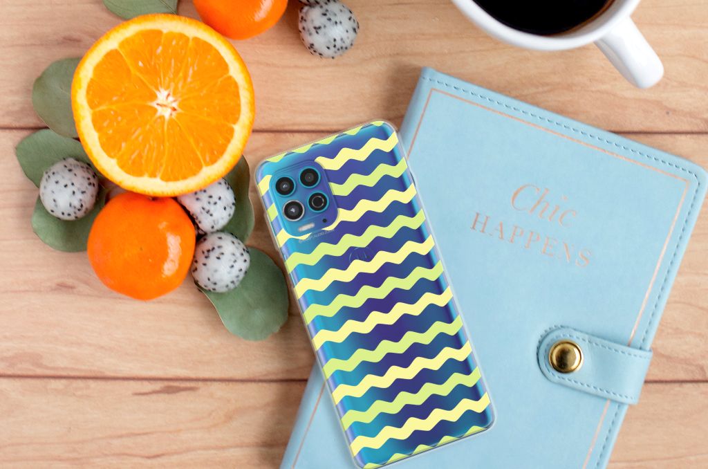 Dit Waves Yellow design hoesje met licht groene en gele golven is speciaal ontworpen voor jouw telefoon. We hebben een vleugje lichtgeel toegevoegd, zodat de case er een beetje spannender en leuker uitziet. Dit licht groene hoesje met licht groene golven ziet er oogstrelend uit. Het wordt in ons eigen magazijn bedrukt, in zeer goede kwaliteit inkt. Wij kunnen dus een zeer duurzaam hoesje met licht groene golven garanderen. Dit hele mooie Motorola Moto G100 TPU bumper heeft vele extra’s. Is dit licht groene design hoesje je op het lijf geschreven? Grijp dan nu je kans. Deze TPU case met lichtgroene golven wordt alleen aan de bovenkant bedrukt en is zeer flexibel. De randen van het hoesje met licht groene golven blijven transparant en worden niet bedrukt. Met dit hoesje past jouw telefoon altijd in je broekzak.