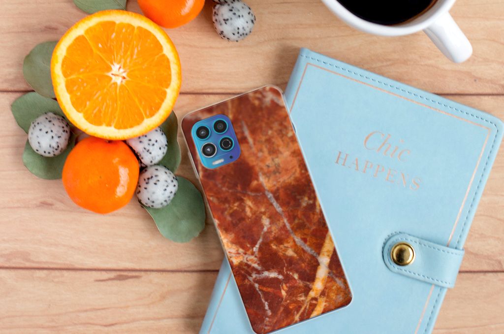 Dit design hoesje met Marmer Bruin is voor de artistieke personen onder ons. De Grieken en Romeinen wisten het al te waarderen door het als bouw- en bekledingsmateriaal toe te passen. Naast het witte Carrara marmer met haar zacht grijze geaderde belijning zijn de diverse soorten in een ruim kleurenpallet te krijgen. We hebben verschillende kleuren op design hoesjes gezet, zoals in dit geval bruin marmer. Dit is een Motorola Moto G100 TPU Siliconen Hoesje met marmer in bruine kleur. Het marmer wordt bedrukt op de voorkant van een tpu case, die beschikt over opstaande randen aan de voorkant en heel goed combineert met een screenprotector. De rijkheid aan kleuren en varianties in afwerking geeft ontwerpers de vrijheid om met marmer hele mooie architectonische projecten te realiseren. Wij hebben onze designer ook veel vrijheid gegeven. Het resultaat zie je terug in deze tpu case met bruin marmer, die jouw smartphone goed beschermt. De zijkanten van de case worden niet bedrukt met marmer.