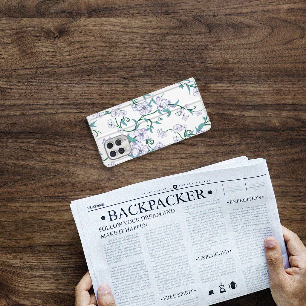 Witte bloemen staan voor puurheid, frisheid, helderheid en eenvoud. Geen wonder dus dat ze al heel lang populair zijn en ook prachtig staan op een telefoonhoesje. Niet iedereen houdt immers van kleurrijke designs. Toch graag bloemetjes op je Smart Cover maar zonder bonte kleuren? Dan is dit hoesje voor de Motorola Moto G100 perfect voor jou. Dit populaire smartphonehoesje heeft één vakje voor een pasje of briefgeld en is aan alle zijden bedrukt. Met de standcase zet je je telefoon gemakkelijk neer, zodat je je handen vrij hebt als je bijvoorbeeld een video wilt kijken. De binnenkant van de standcase is van grijs PU-leer. Dat is fijn, omdat je daardoor niet snel vlekken ziet op je hoesje.