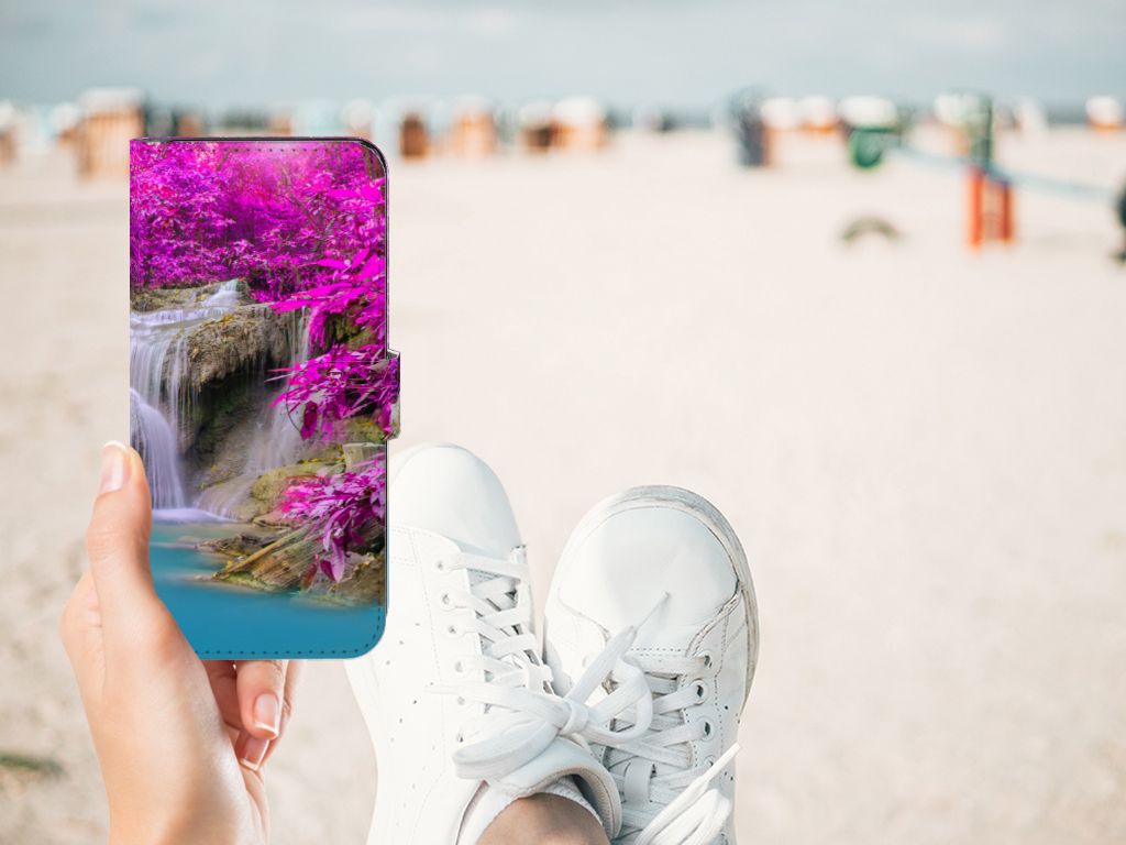 Op deze Motorola Moto G13 | G23 Flip Cover zie je een kalme waterval en de achtergrond is gevuld met paarse bomen. Samen creëert dit een prachtig en kleurrijk spektakel, iets wat je graag op je Motorola Moto G13 | G23 hoesje ziet. Wanneer je hiernaar kijkt, word je direct kalm. Als jij je even boos of verdrietig voelt, hoef je alleen maar naar jouw boekhoesje te kijken om weer blij te worden. Ook jouw telefoon zal blij zijn met deze Flip Cover aangezien deze goede bescherming biedt. Als jij je telefoon per ongeluk laat vallen, is er niets aan de hand. Het hoesje zorgt ervoor dat de telefoon intact blijft. Zelfs als hij op het beeldscherm zou vallen, is er dankzij de magnetische sluiting, niets aan de hand.