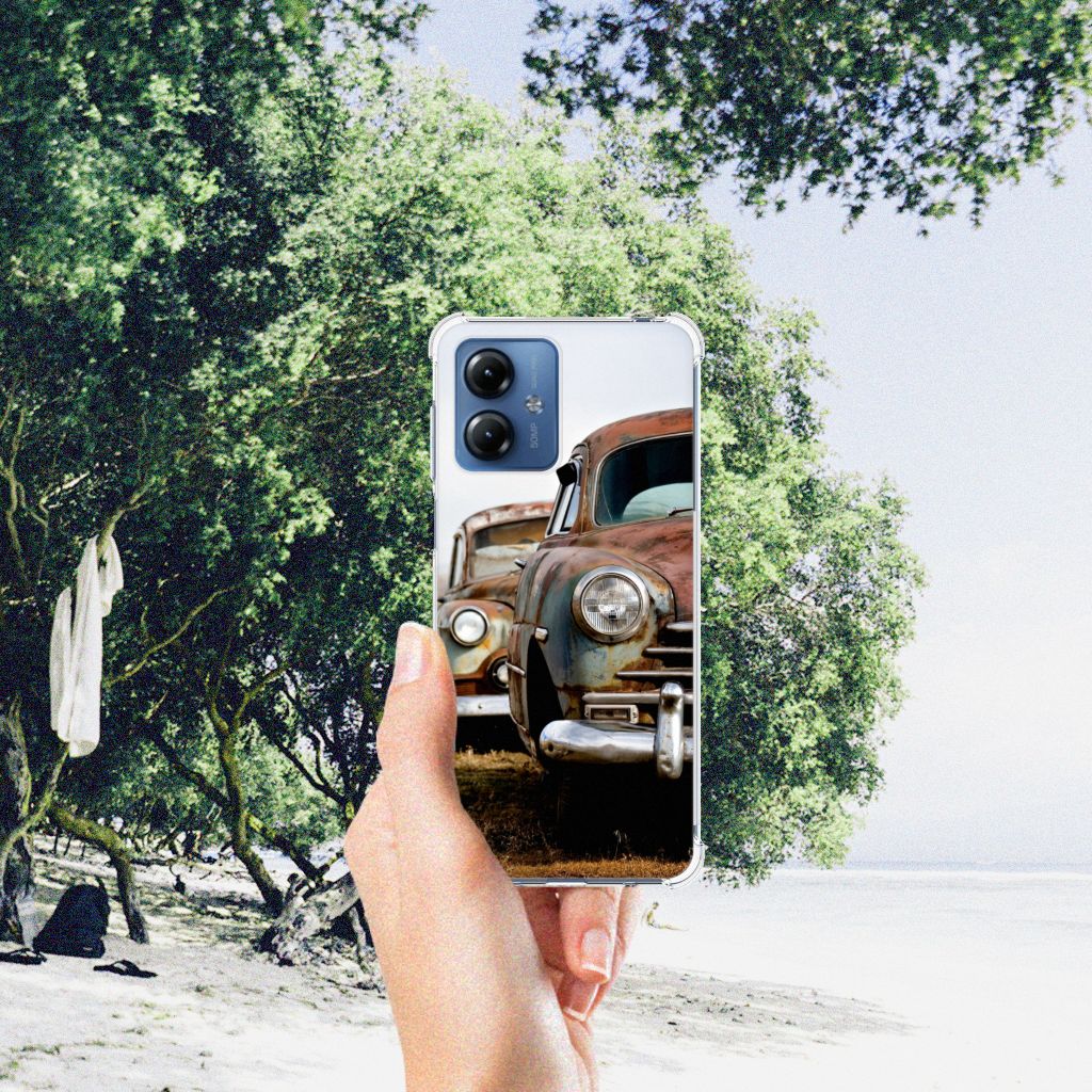 Ben je op zoek naar een uniek telefoonhoesje voor je Motorola Moto G14? Dan ben je bij B2C Telecom aan het juiste adres! Speciaal voor jou hebben we dit prachtige Vintage Auto design in onze collectie hoesjes opgenomen. Het design wordt bedrukt op een Anti-shock Hoesje met foto en is gemaakt van flexibel rubber. Het hoesje is perfect voor de actieve smartphonegebruiker door de opstaande randen/hoeken. Denk aan mensen die veel sporten, reizen of wandelen en net iets meer zekerheid willen als het op hun geliefde telefoon aankomt. Het design wordt alleen aan de bovenkant van het hoesje bedrukt en de randen blijven transparant. Aan de zijkanten zijn uitsparingen gemaakt waardoor je met gemak alle knoppen en poorten kunt bedienen. Wij adviseren om dit hoesje in combinatie met een screenprotector te gebruiken voor een langere levensduur van je telefoon. Wil je dit hoesje nog iets extra's geven? Voeg dan gratis je naam of een quote toe! Is dit design hoesje toch niet helemaal wat je zocht? Ontwerp dan zelf een hoesje in ons ontwerpprogramma.