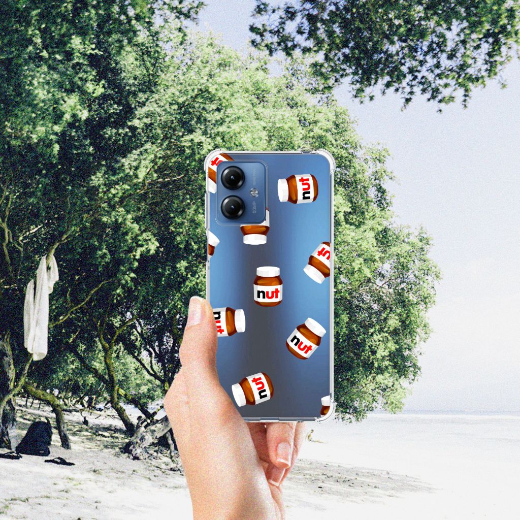 Ben je op zoek naar een uniek telefoonhoesje voor je Motorola Moto G14? Dan ben je bij B2C Telecom aan het juiste adres! Speciaal voor jou hebben we dit prachtige Nut Jar design in onze collectie hoesjes opgenomen. Het design wordt bedrukt op een Beschermhoes en is gemaakt van flexibel rubber. Het hoesje is perfect voor de actieve smartphonegebruiker door de opstaande randen/hoeken. Denk aan mensen die veel sporten, reizen of wandelen en net iets meer zekerheid willen als het op hun geliefde telefoon aankomt. Het design wordt alleen aan de bovenkant van het hoesje bedrukt en de randen blijven transparant. Aan de zijkanten zijn uitsparingen gemaakt waardoor je met gemak alle knoppen en poorten kunt bedienen. Wij adviseren om dit hoesje in combinatie met een screenprotector te gebruiken voor een langere levensduur van je telefoon. Wil je dit hoesje nog iets extra's geven? Voeg dan gratis je naam of een quote toe! Is dit design hoesje toch niet helemaal wat je zocht? Ontwerp dan zelf een hoesje in ons ontwerpprogramma.