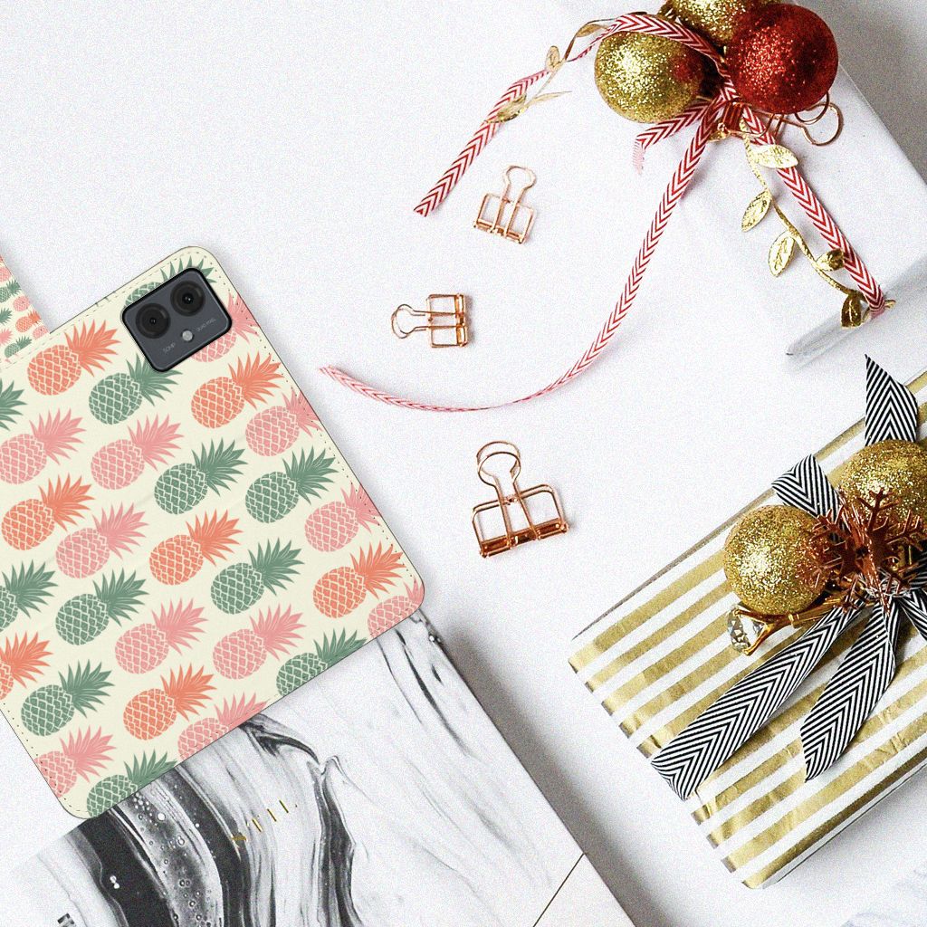 Motorola Moto G14 Bookcover met pasjes Ananas