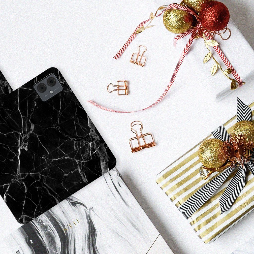 Niet alleen heeft deze bookcase een artistiek design van zwart marmer, het is ook een telefoonhoesje met ruimte voor pasjes. Deze bookcase heeft een strak design en is functioneel. Het voordeel aan een telefoonhoesje met ruimte voor pasjes is dat je al jouw belangrijkste bezittingen op één plek bewaart en dus minder snel kunt kwijt raken. Marmer is een materiaal wat al sinds de Grieken en Romeinen wordt gewaardeerd, het straalt namelijk luxe uit. Bovendien ziet het Motorola Moto G14 hoesje er altijd net wat anders uit door de geaderde belijning die erdoorheen loopt. Hierdoor is jouw Bookcase met pasjes niet alleen mooi, maar ook uniek. Andere Motorola Moto G14 Bookcase met een zwart marmer design zullen er niet precies hetzelfde uitzien, aangezien de grijze belijning op verschillende manieren kan lopen. Als je hem nog verder wilt personaliseren, dan is het mogelijkheid om jouw naam erop te laten drukken in een kleur naar keuze.