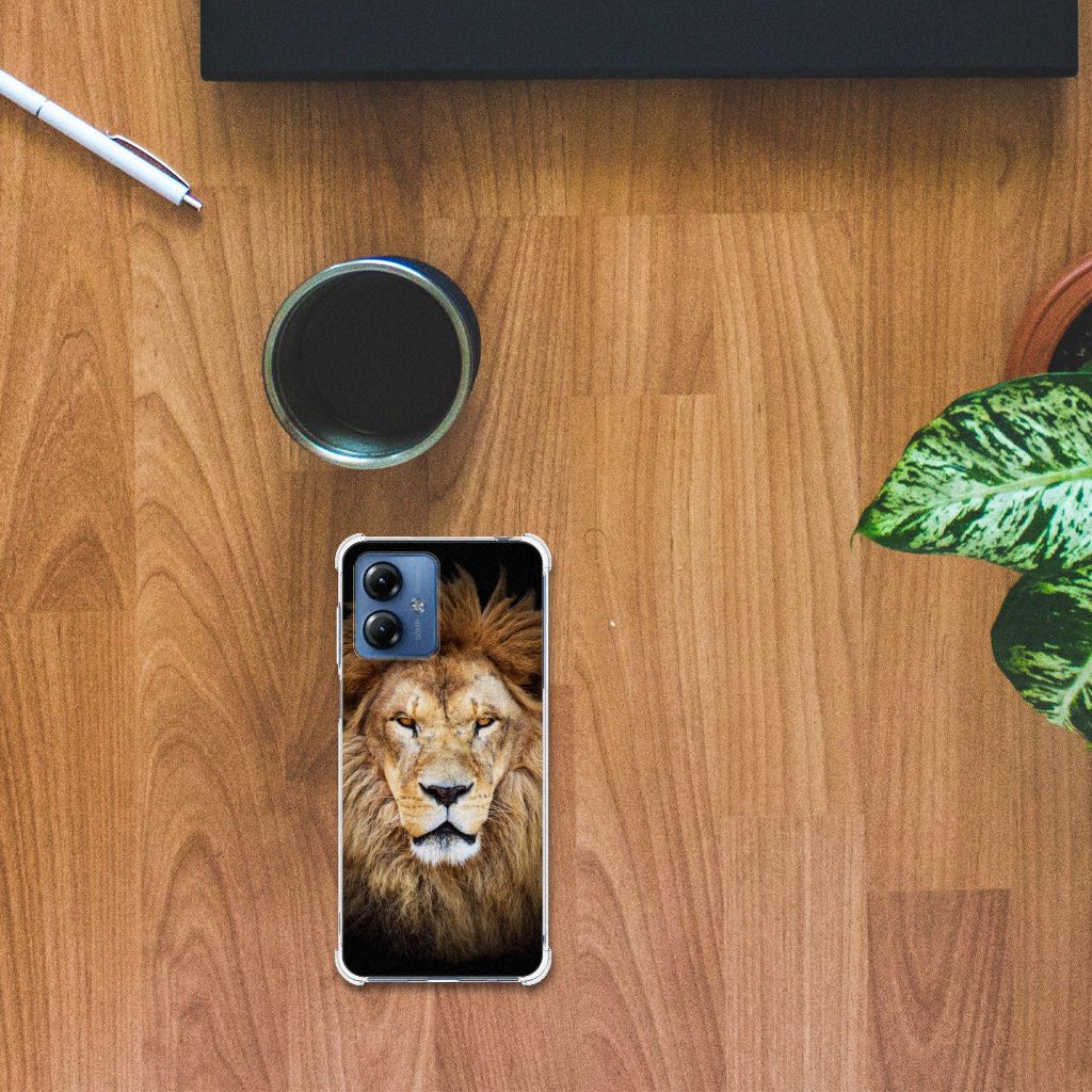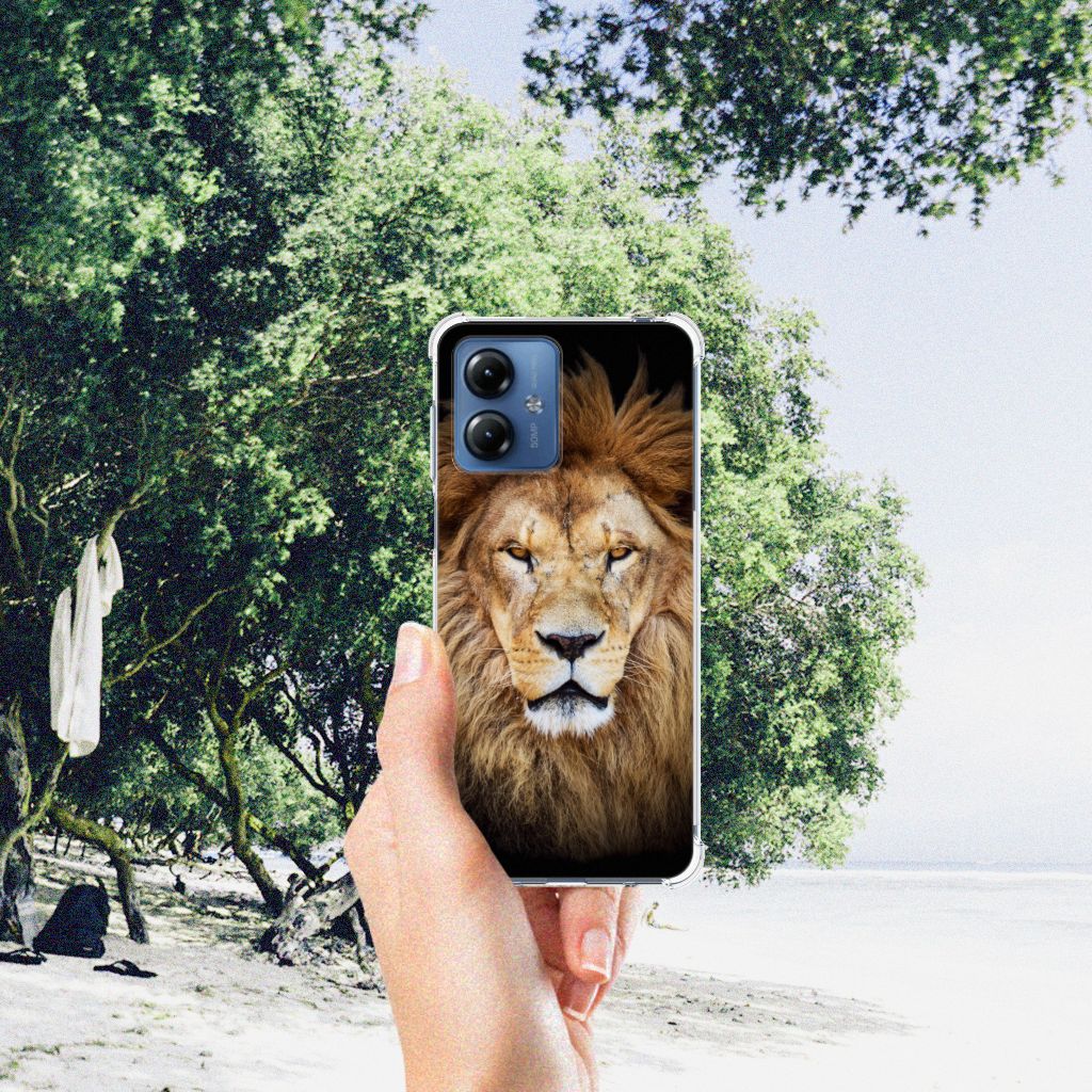 Ben je op zoek naar een uniek telefoonhoesje voor je Motorola Moto G14? Dan ben je bij B2C Telecom aan het juiste adres! Speciaal voor jou hebben we dit prachtige Leeuw design in onze collectie hoesjes opgenomen. Het design wordt bedrukt op een Case Anti-shock en is gemaakt van flexibel rubber. Het hoesje is perfect voor de actieve smartphonegebruiker door de opstaande randen/hoeken. Denk aan mensen die veel sporten, reizen of wandelen en net iets meer zekerheid willen als het op hun geliefde telefoon aankomt. Het design wordt alleen aan de bovenkant van het hoesje bedrukt en de randen blijven transparant. Aan de zijkanten zijn uitsparingen gemaakt waardoor je met gemak alle knoppen en poorten kunt bedienen. Wij adviseren om dit hoesje in combinatie met een screenprotector te gebruiken voor een langere levensduur van je telefoon. Wil je dit hoesje nog iets extra's geven? Voeg dan gratis je naam of een quote toe! Is dit design hoesje toch niet helemaal wat je zocht? Ontwerp dan zelf een hoesje in ons ontwerpprogramma.