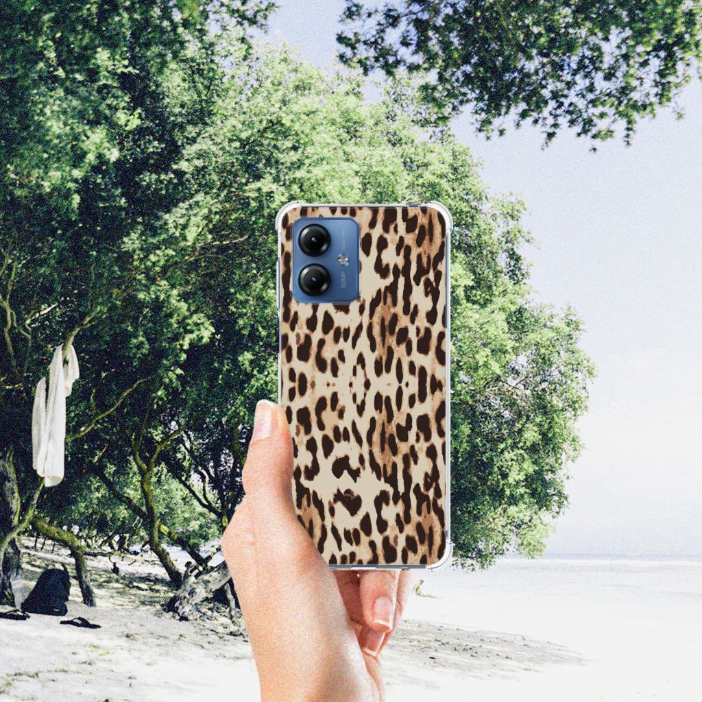 Ben je op zoek naar een uniek telefoonhoesje voor je Motorola Moto G14? Dan ben je bij B2C Telecom aan het juiste adres! Speciaal voor jou hebben we dit prachtige Leopard design in onze collectie hoesjes opgenomen. Het design wordt bedrukt op een Case Anti-shock en is gemaakt van flexibel rubber. Het hoesje is perfect voor de actieve smartphonegebruiker door de opstaande randen/hoeken. Denk aan mensen die veel sporten, reizen of wandelen en net iets meer zekerheid willen als het op hun geliefde telefoon aankomt. Het design wordt alleen aan de bovenkant van het hoesje bedrukt en de randen blijven transparant. Aan de zijkanten zijn uitsparingen gemaakt waardoor je met gemak alle knoppen en poorten kunt bedienen. Wij adviseren om dit hoesje in combinatie met een screenprotector te gebruiken voor een langere levensduur van je telefoon. Wil je dit hoesje nog iets extra's geven? Voeg dan gratis je naam of een quote toe! Is dit design hoesje toch niet helemaal wat je zocht? Ontwerp dan zelf een hoesje in ons ontwerpprogramma.
