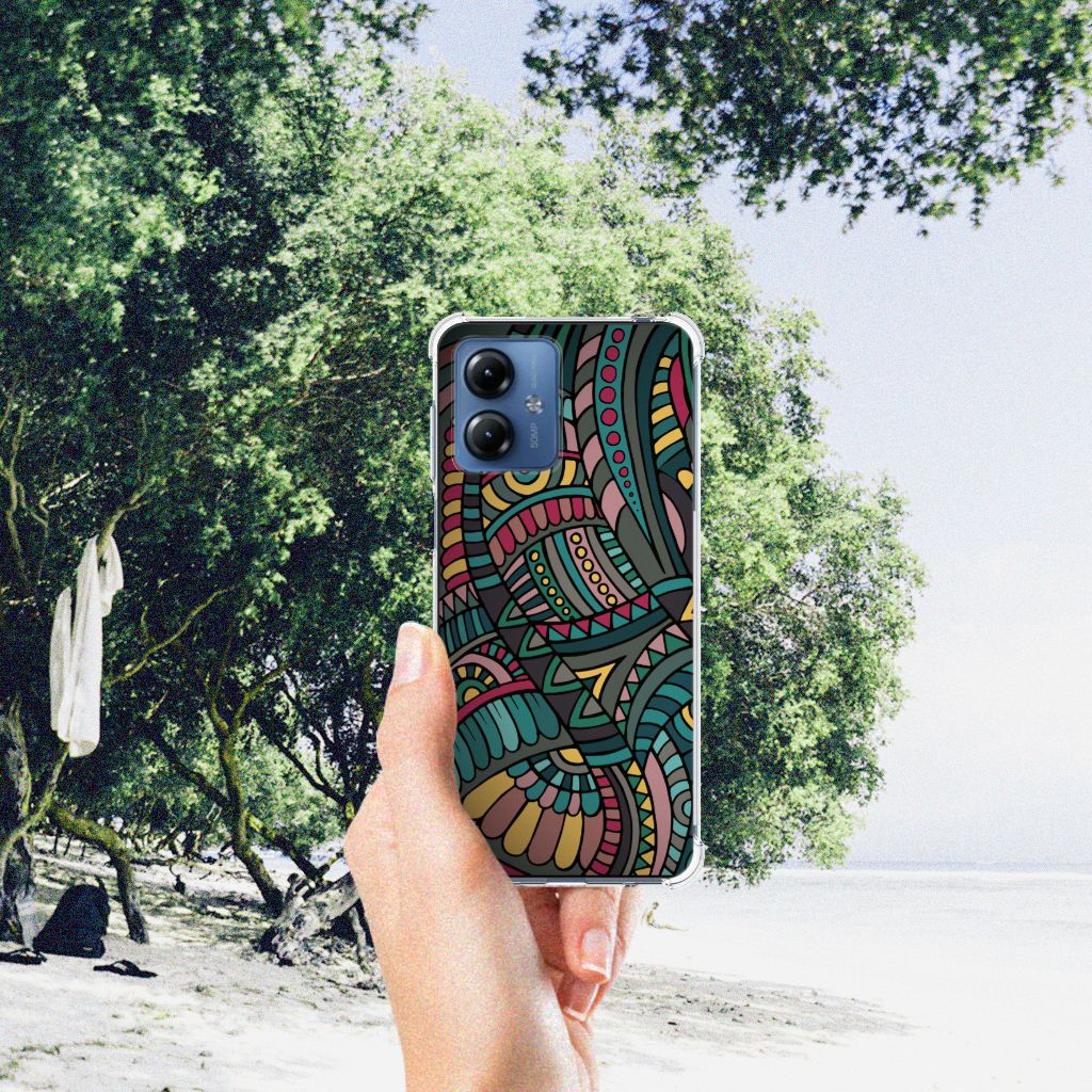 Ben je op zoek naar een uniek telefoonhoesje voor je Motorola Moto G14? Dan ben je bij B2C Telecom aan het juiste adres! Speciaal voor jou hebben we dit prachtige Aztec design in onze collectie hoesjes opgenomen. Het design wordt bedrukt op een Doorzichtige Silicone Hoesje en is gemaakt van flexibel rubber. Het hoesje is perfect voor de actieve smartphonegebruiker door de opstaande randen/hoeken. Denk aan mensen die veel sporten, reizen of wandelen en net iets meer zekerheid willen als het op hun geliefde telefoon aankomt. Het design wordt alleen aan de bovenkant van het hoesje bedrukt en de randen blijven transparant. Aan de zijkanten zijn uitsparingen gemaakt waardoor je met gemak alle knoppen en poorten kunt bedienen. Wij adviseren om dit hoesje in combinatie met een screenprotector te gebruiken voor een langere levensduur van je telefoon. Wil je dit hoesje nog iets extra's geven? Voeg dan gratis je naam of een quote toe! Is dit design hoesje toch niet helemaal wat je zocht? Ontwerp dan zelf een hoesje in ons ontwerpprogramma.