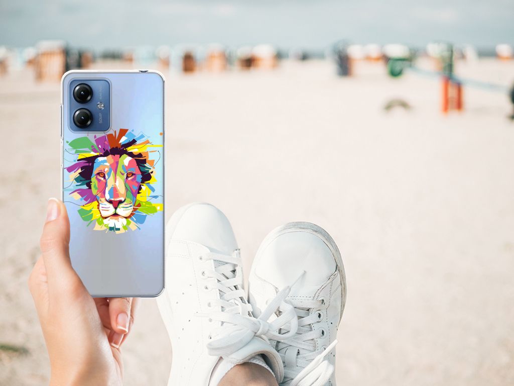 Ben je op zoek naar een uniek telefoonhoesje voor je Motorola Moto G14? Dan ben je bij B2C Telecom aan het juiste adres! Speciaal voor jou hebben we dit prachtige Lion Color design in onze collectie hoesjes opgenomen. Het design wordt bedrukt op een Telefoonhoesje met Naam en is gemaakt van flexibel rubber. Het design wordt alleen aan de bovenkant van het hoesje bedrukt en de randen blijven transparant. Aan de zijkanten zijn uitsparingen gemaakt waardoor je met gemak alle knoppen en poorten kunt bedienen. Wij adviseren om dit hoesje in combinatie met een screenprotector te gebruiken voor een langere levensduur van je telefoon. Wil je dit design hoesje nog iets extra's geven? Voeg dan gratis je naam of een quote toe! Is dit design hoesje toch niet helemaal wat je zocht? Ontwerp dan zelf een hoesje in ons ontwerpprogramma.