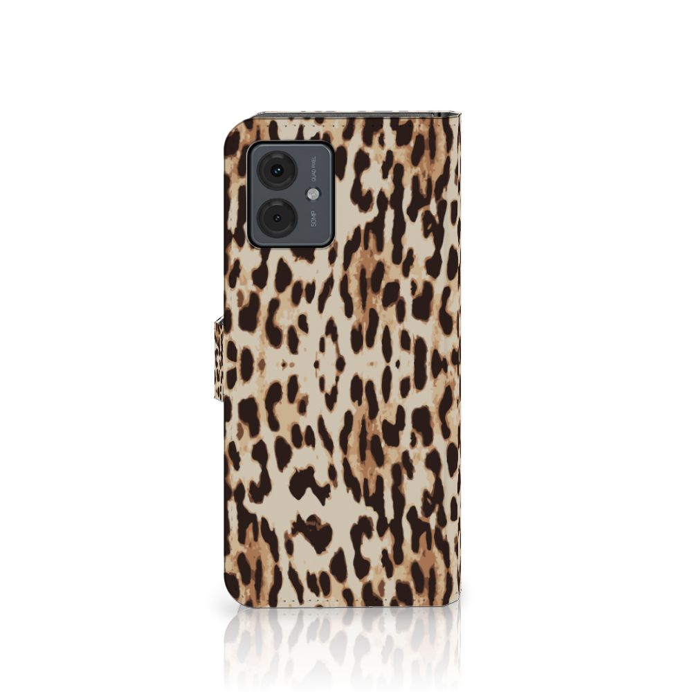 Motorola Moto G14 Telefoonhoesje met Pasjes en met magnetische sluitclip Leopard