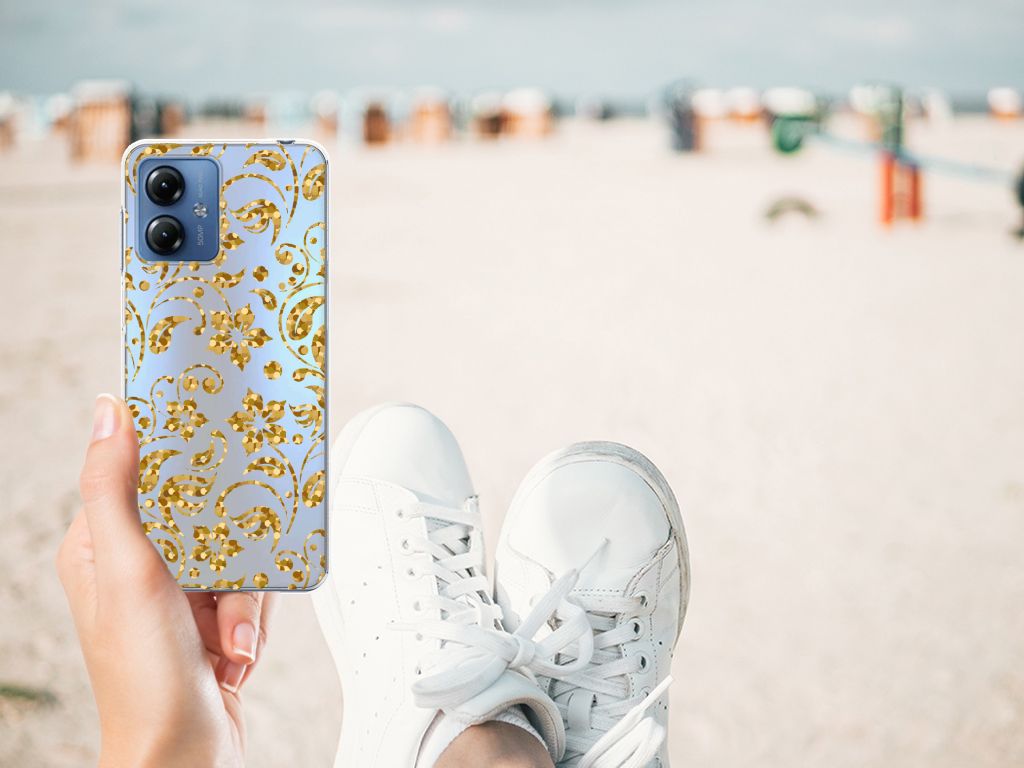 Ben je op zoek naar een uniek telefoonhoesje voor je Motorola Moto G14? Dan ben je bij B2C Telecom aan het juiste adres! Speciaal voor jou hebben we dit prachtige Gouden Bloemen design in onze collectie hoesjes opgenomen. Het design wordt bedrukt op een TPU Case en is gemaakt van flexibel rubber. Het design wordt alleen aan de bovenkant van het hoesje bedrukt en de randen blijven transparant. Aan de zijkanten zijn uitsparingen gemaakt waardoor je met gemak alle knoppen en poorten kunt bedienen. Wij adviseren om dit hoesje in combinatie met een screenprotector te gebruiken voor een langere levensduur van je telefoon. Wil je dit design hoesje nog iets extra's geven? Voeg dan gratis je naam of een quote toe! Is dit design hoesje toch niet helemaal wat je zocht? Ontwerp dan zelf een hoesje in ons ontwerpprogramma.
