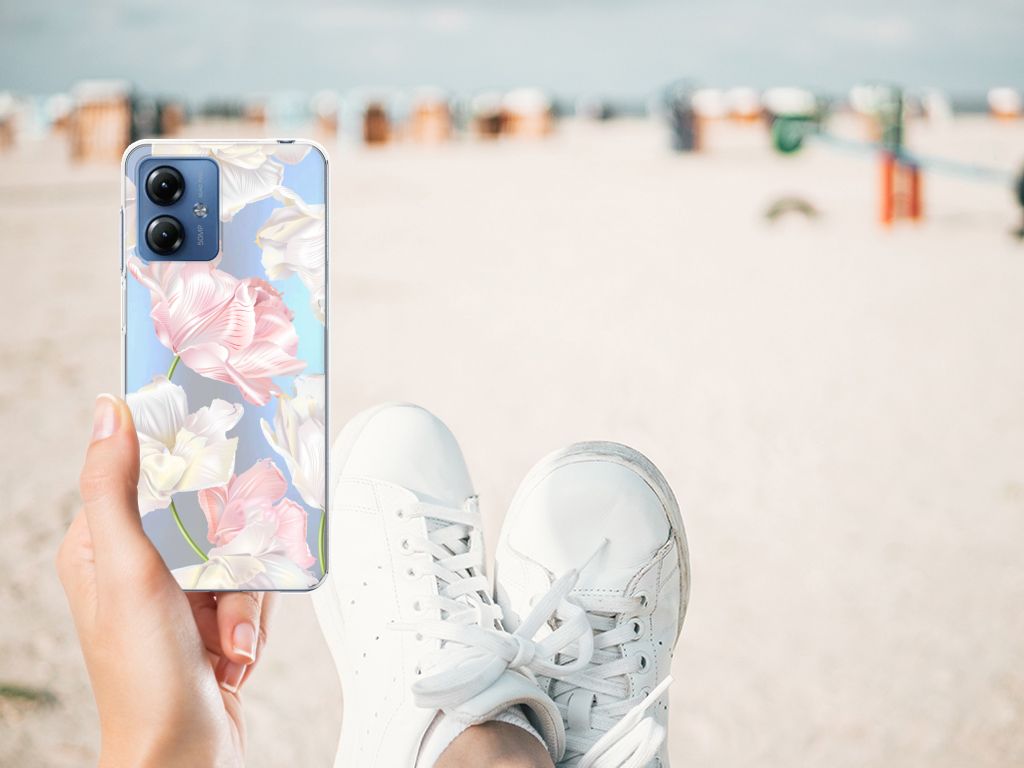 Een bosje bloemen doet een mens (en zijn smartphone) goed. De witte en roze bloemen op deze Motorola Moto G14 TPU Case geven jouw smartphone een zeer mooie uitstraling. Je wordt er ook meteen een stuk rustiger van als je aan het appen of aan het bellen bent. Valt dan je telefoon op de grond, dan zal er dankzij de tpu case met het design Lovely Flowers ontstaan. Helemaal niet als je er een screenprotector bij hebt gekocht. Onze tpu cases met roze en witte bloemen zien er zeer prettig uit en zijn heel praktisch, getuige onder meer de opstaande randen en het flexibele materiaal. Alleen de achterkant van de tpu case wordt bedrukt met roze en witte bloemen. Op deze tpu case kun je trouwens ook een eigen ontwerp zetten. In een paar simpele stappen ontwerp je zelf een stand case met daarop jouw favoriete bloemen.