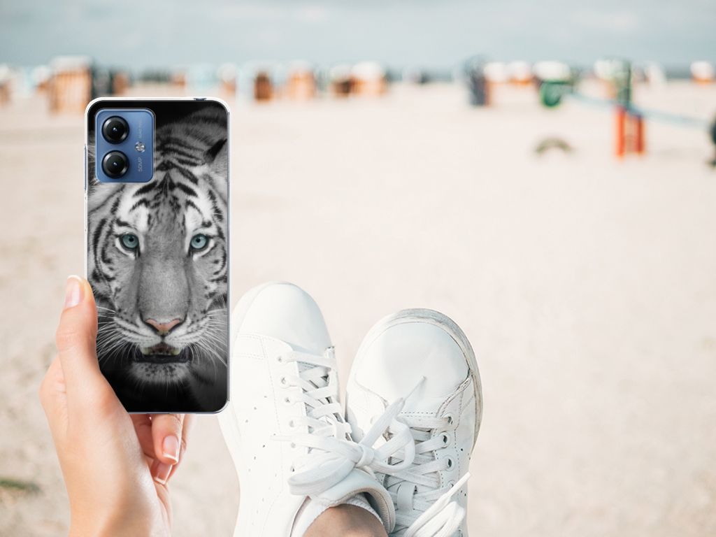 Omdat de Witte Tijger zo bijzonder is, zijn wij bereid deze voor zeer lage kosten op een tpu case te zetten. Dit kunnen we zo goedkoop doen omdat we het drukwerk in eigen beheer doen. Witte tijgers leefden lange tijd in de bossen van India, Bangladesh, Nepal, Bhutan en China en kunnen wel 257 kilo wegen. Dit zwaargewicht kunnen we bedrukken op verschillende soorten hoesjes, zoals deze tpu cases. Deze Motorola Moto G14 TPU Hoesje kan exclusief in het bezit van jou komen. Zeker als je er zelf nog unieke teksten en/of beelden aan toevoegt. Het tpu hoesje is zeer flexibel en wordt alleen aan de bovenzijde bedrukt. De randen van dit flexibele hoesje blijven doorzichtig. Tegenwoordig zijn witte tijgers alleen in gevangenschap te bewonderen. Jij zorgt voor een goede bescherming van je smartphone met dit design hoesje met witte tijger.