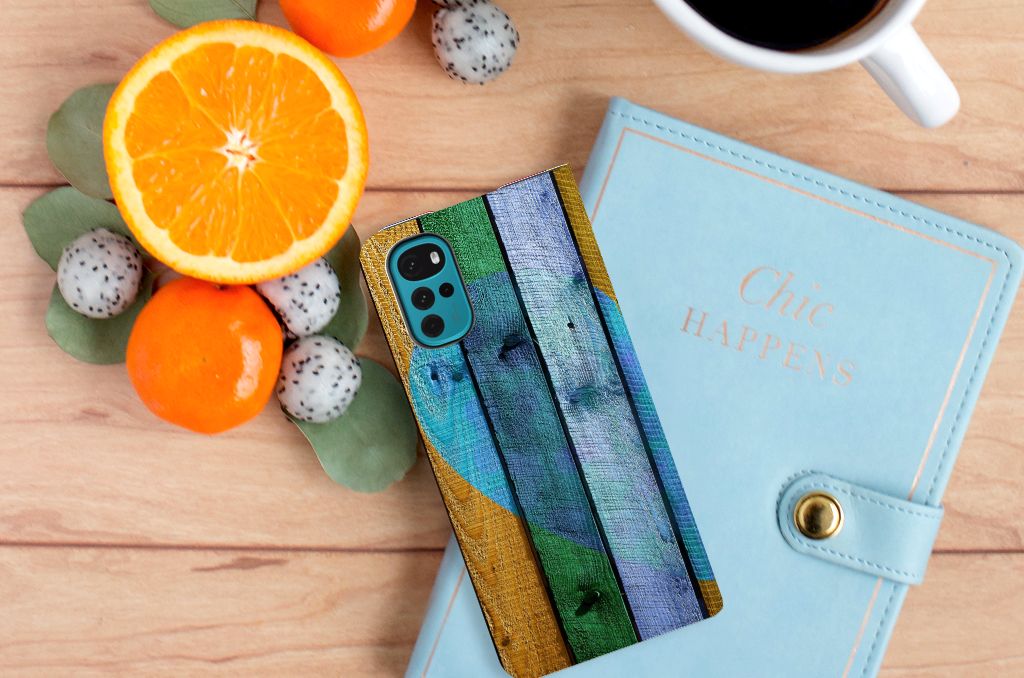 Motorola Moto G22 Book Wallet Case Wood Blue